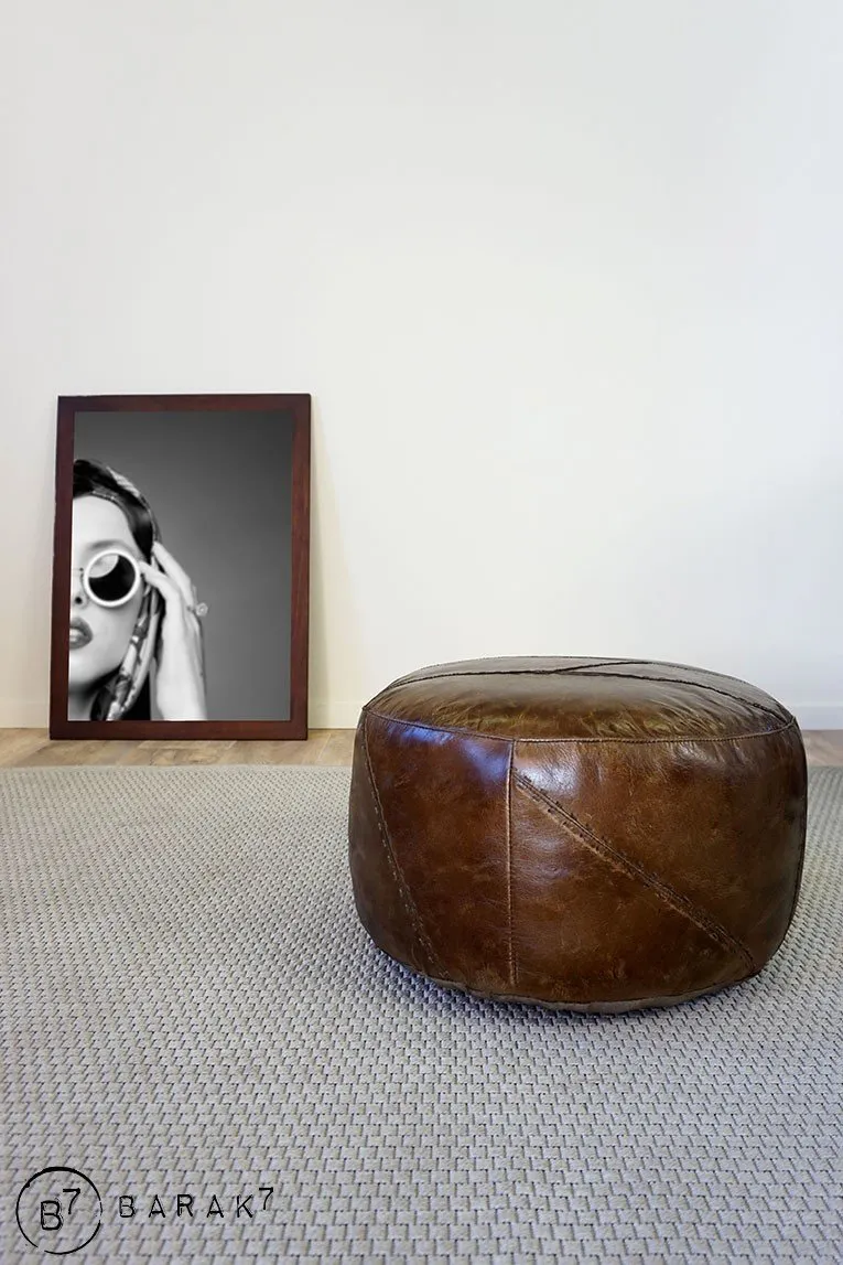 Ronde lederen poef Patchwork