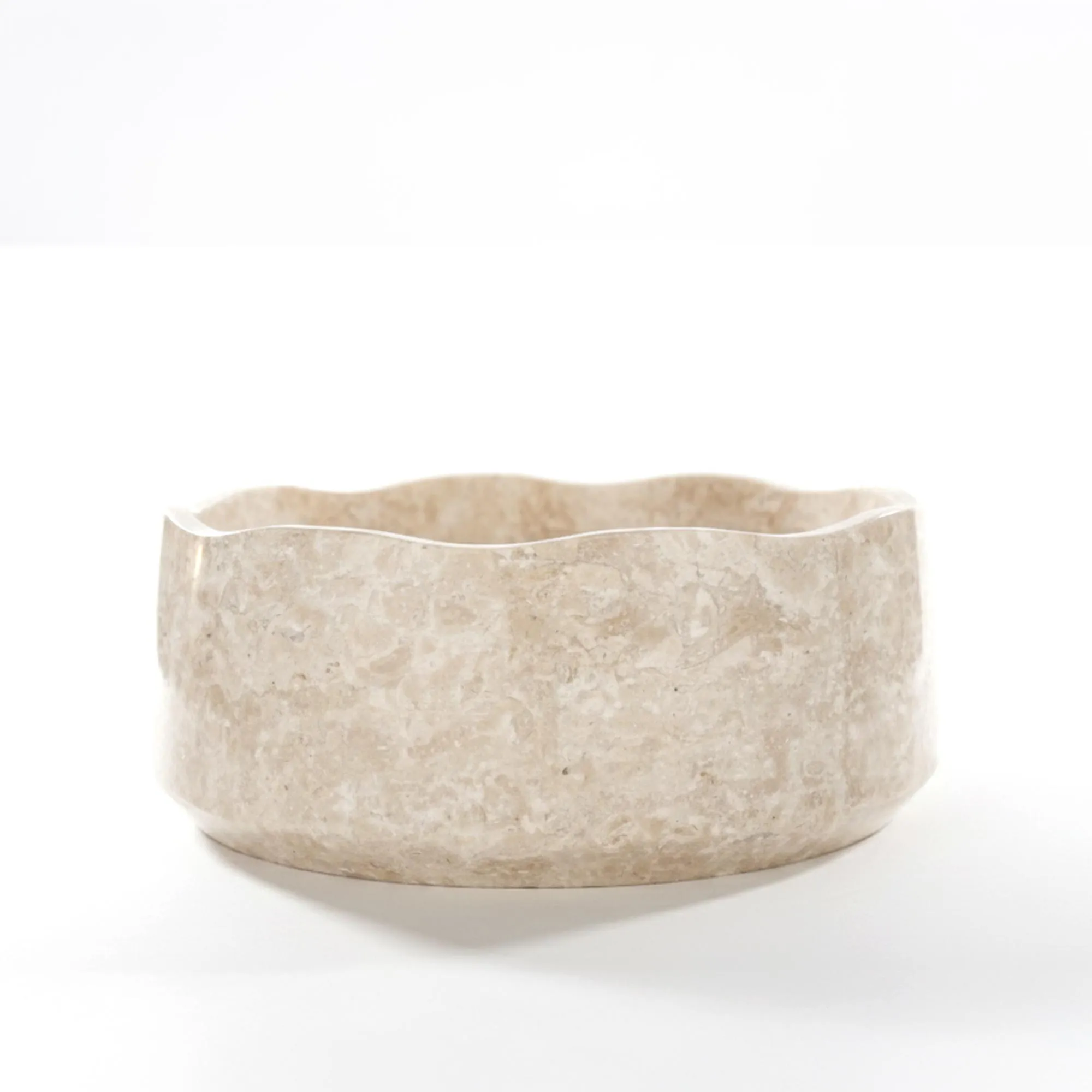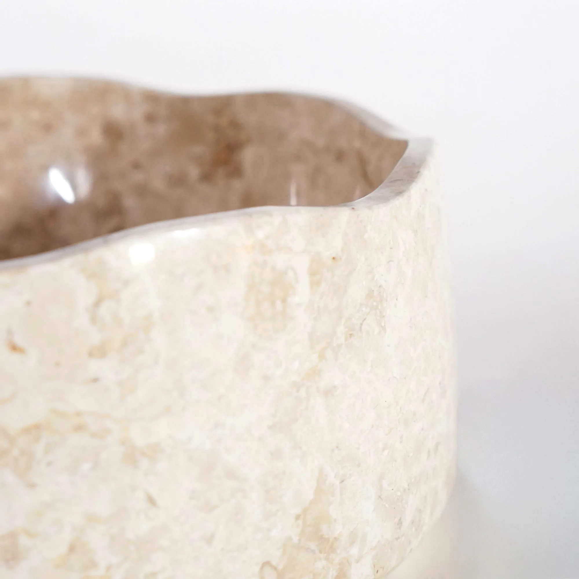 Laat u betoveren door de opzetwastafel in natuursteen Flower, een met precisie uit beige marmer gebeeldhouwd stuk. Deze opzetwastafel in de vorm van een bloem brengt een artistiek en elegant accent in uw badkamer en combineert perfect functionaliteit met esthetiek.