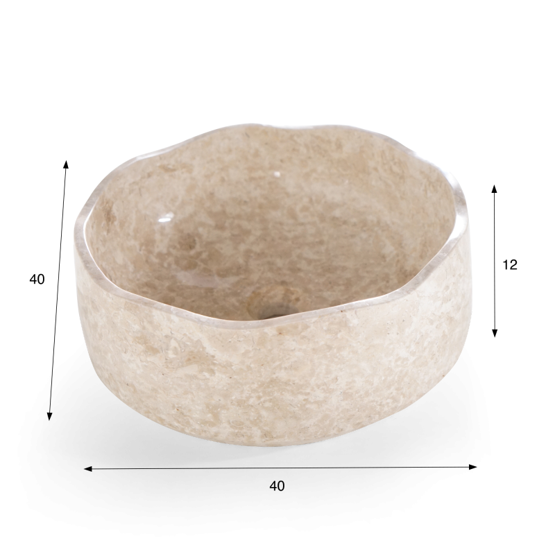 De binnenzijde van de wastafel is zorgvuldig gepolijst en waterafstotend behandeld, terwijl de buitenkant haar natuurlijke en authentieke uitstraling behoudt. Deze wastafel is voorzien van een afvoergat volgens de Europese normen, klaar om een universele afvoerplug te ontvangen. Dankzij haar veelzijdig design combineert ze harmonieus met een badkamermeubel, een blad of een console.