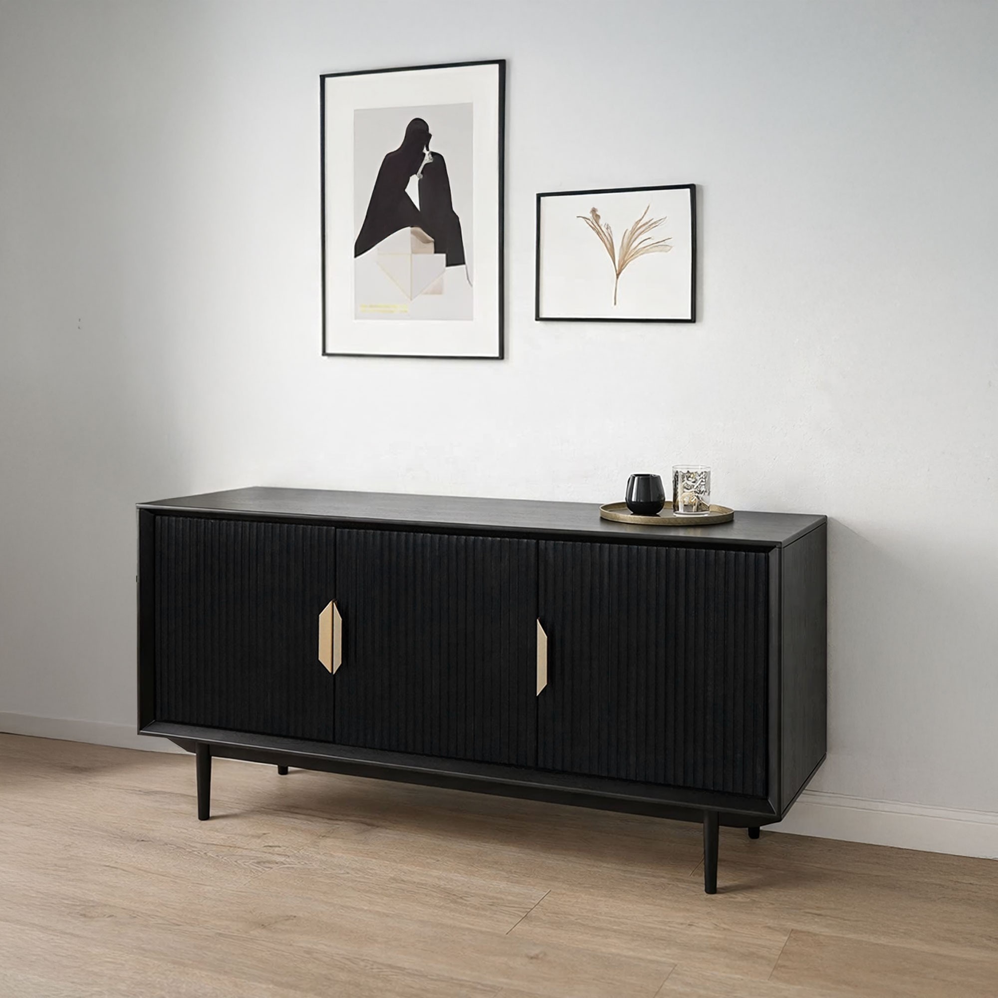 De rijke textuur en warme tinten van het zwart gebeitste mangohout brengen een vleugje authenticiteit en warmte in je ruimte, waardoor dit dressoir niet alleen een opbergmeubel is, maar ook een functioneel kunstwerk.