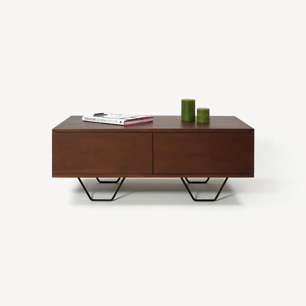 Naast haar esthetiek is deze salontafel in massief teakhout ook ontworpen met functionaliteit in gedachten. De twee ruime compartimenten achter de push-pull draaideurtjes bieden plaats voor magazines, afstandsbedieningen en andere dagelijkse accessoires, terwijl de strakke look van uw woonkamer behouden blijft. Het handgreeploze openingssysteem versterkt de minimalistische elegantie en benadrukt de zachte, vloeiende lijnen.