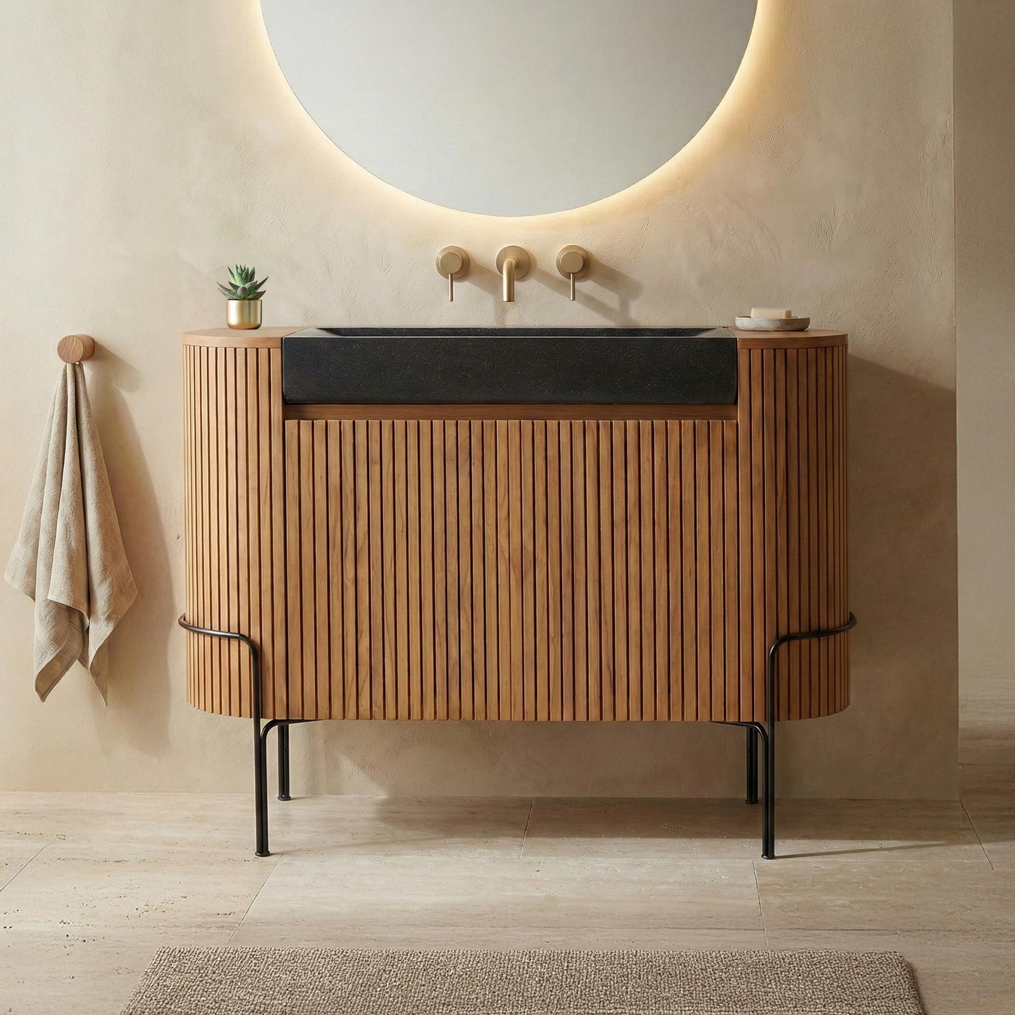 Massief teakhouten badkamermeubel met zwarte terrazzo waskom - Rani