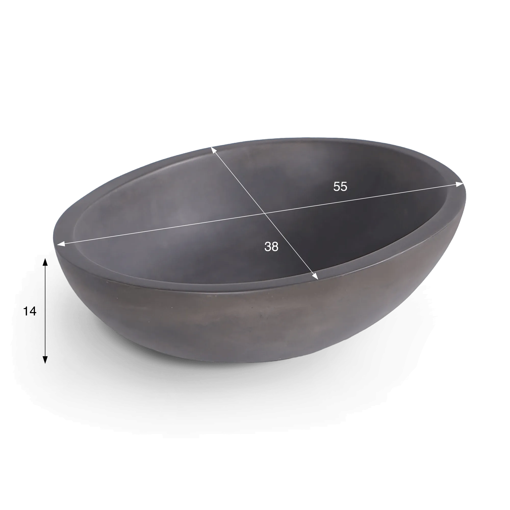 Het harmonieuze ovale silhouet, in diep antraciet beton, heeft een minimalistische, royale vorm die zowel eenvoud als ingetogen luxe oproept. Elk stuk is met de hand vervaardigd en getuigt van nauwgezet vakmanschap, waarbij elke ronding en elke afwerking met nauwgezette precisie is uitgevoerd.