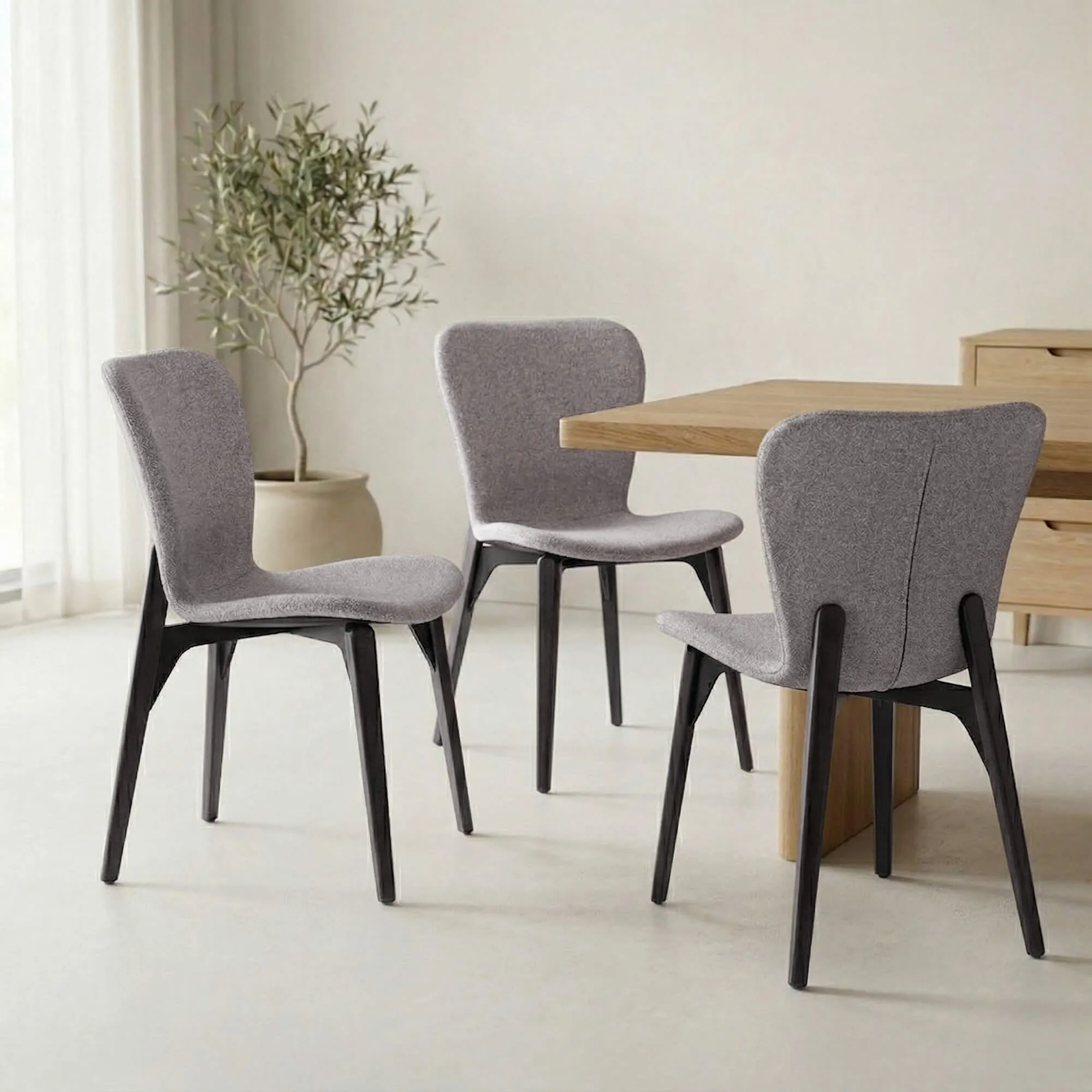 Eetkamerstoel in beige bouclé stof en zwarte essenhouten poten - Paragon