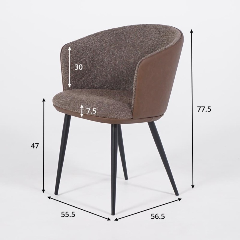 Eetkamerstoel in bruine boucléstof, bruin kunstleer – Hey