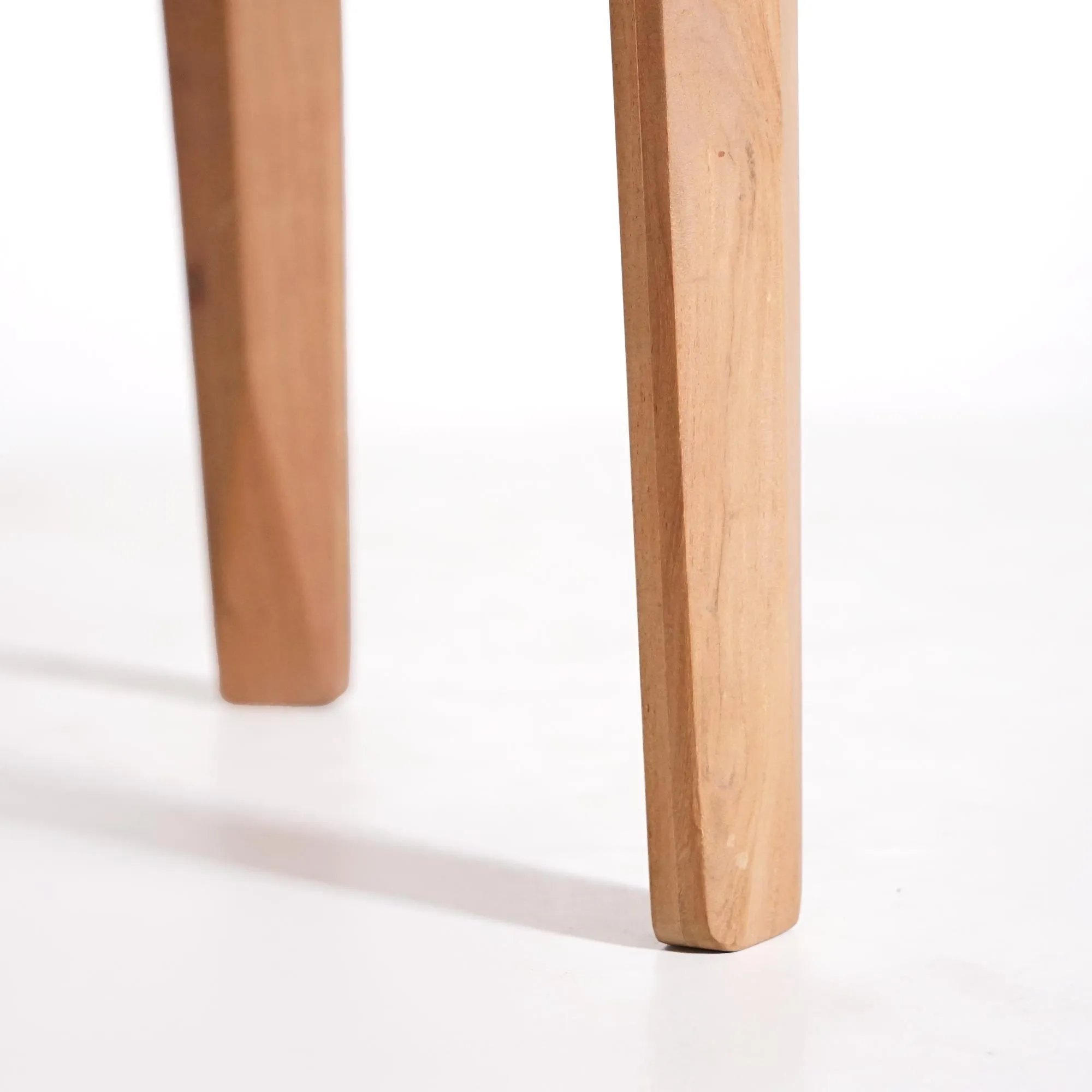 In combinatie met een van onze eetkamerstoelen in mangohout en stof vormt de Orama-tafel een harmonieus geheel waarin hout, design en licht in perfecte balans samenkomen.