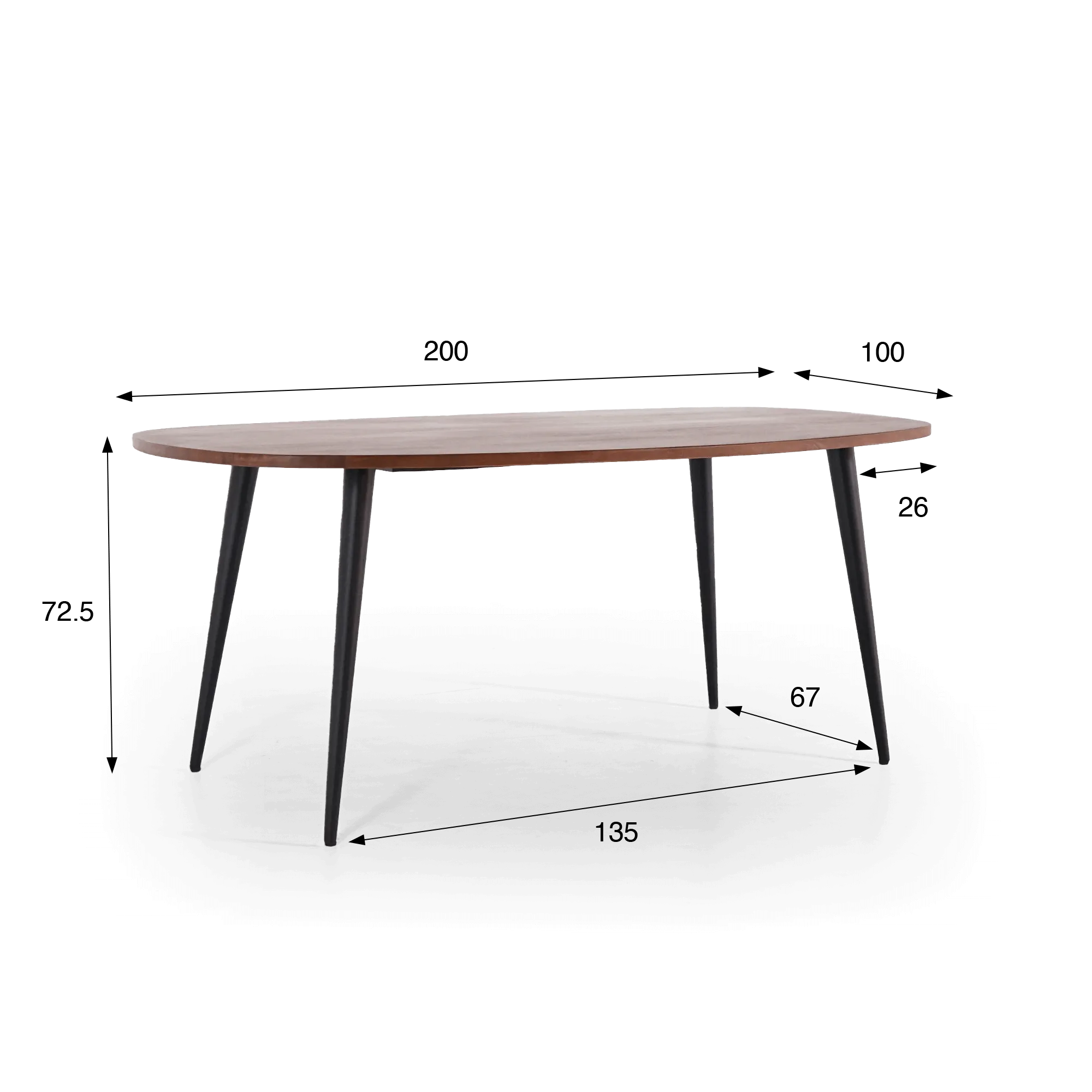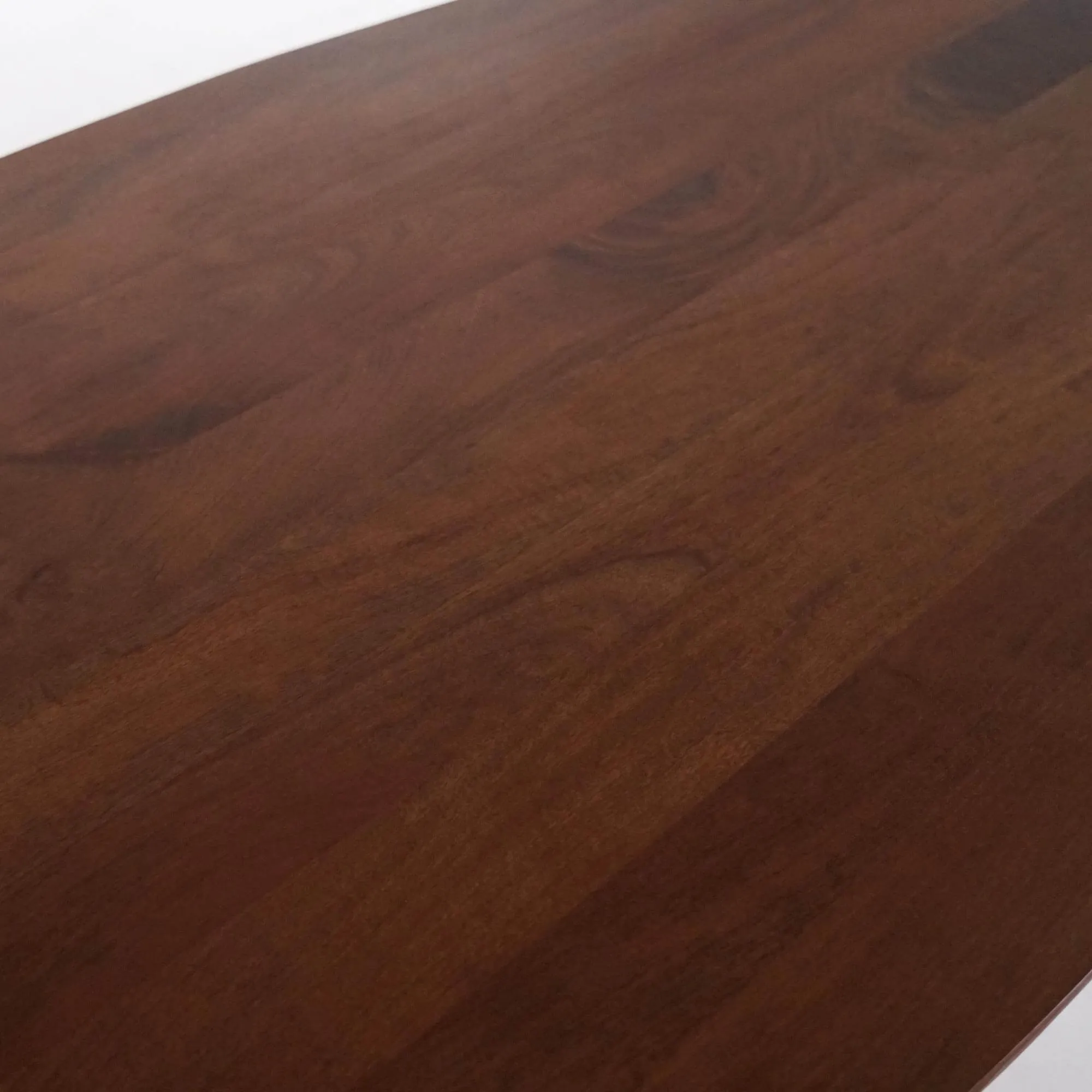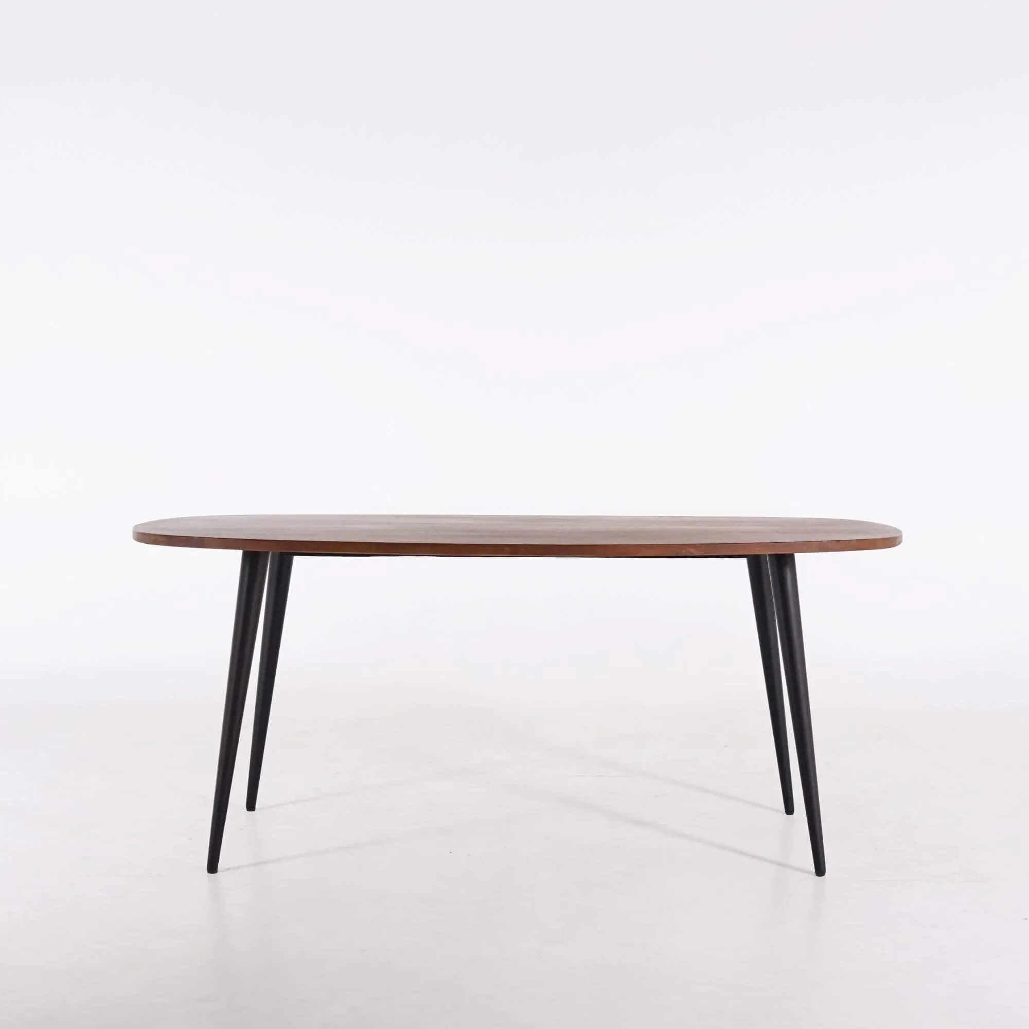 Volledig met de hand vervaardigd in ons atelier, onderscheidt de massieve mangohouten eettafel Suna zich door haar ovale blad van 200 cm lang en 100 cm breed, dat royaal plaats biedt aan zes tot acht gasten. De diepe bruine tint van het mangohout benadrukt de natuurlijke nerf en geeft elk stuk een unieke uitstraling. Het gladde oppervlak en de zacht afgeronde randen weerspiegelen onze hoge afwerkingsgraad en de zorg voor elk detail.