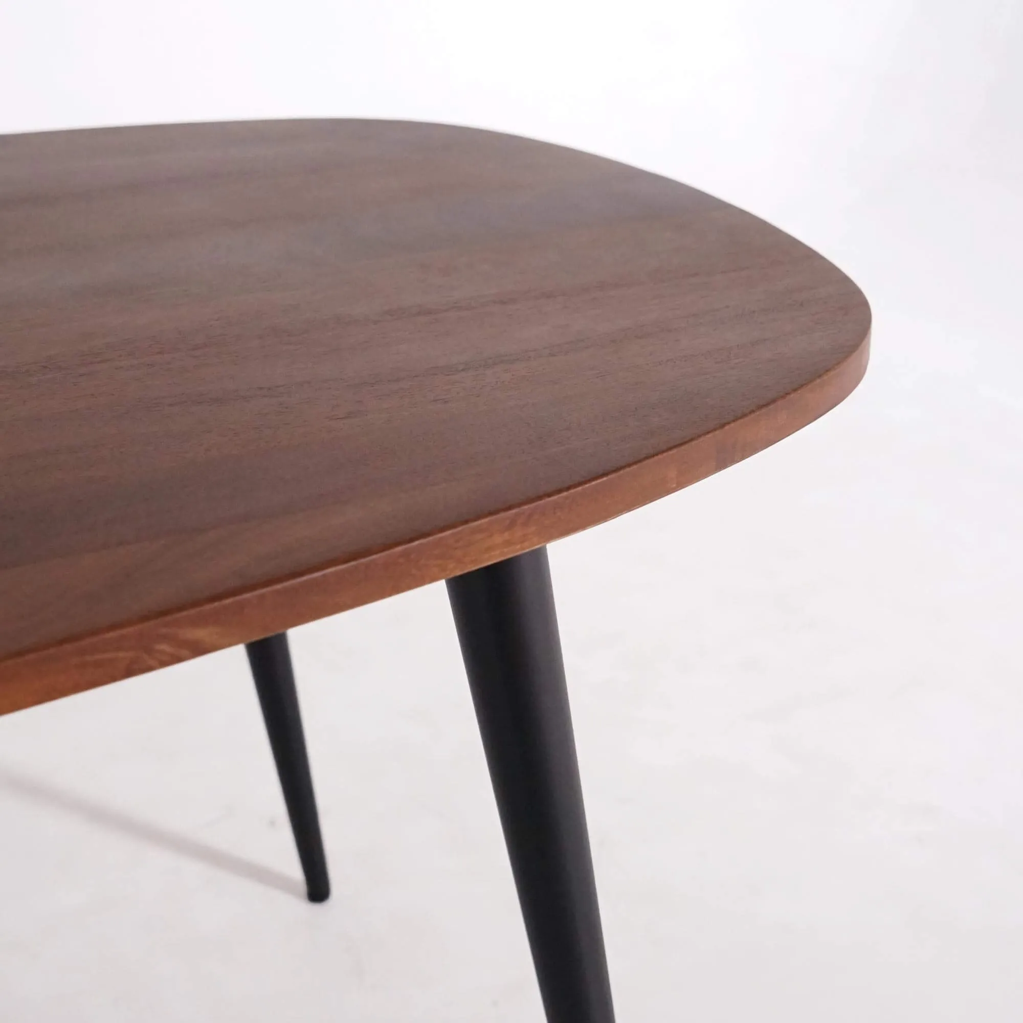 De vier taps toelopende poten in zwart gebeitst hout geven de massieve mangohouten eettafel Suna een visuele lichtheid en een perfect evenwicht in de structuur. Hun slanke silhouet, geïnspireerd op Scandinavische ontwerpen uit de jaren dertig, verleent het geheel een tijdloos karakter dat zowel in een modern interieur als in een meer vintage of bohemien ruimte past.