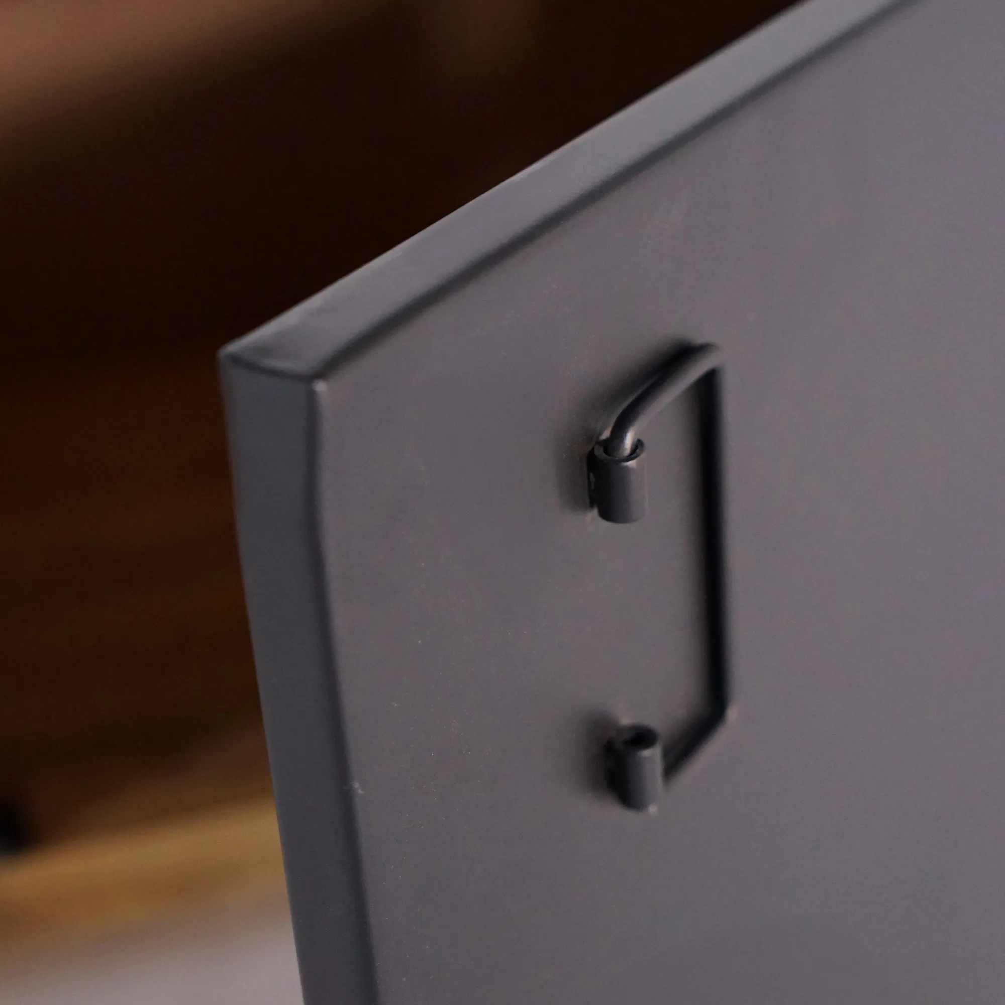 Met zijn 180 cm lengte en 50 cm hoogte biedt dit tv-meubel in massief mangohout met metalen deur een doordachte structuur voor dagelijks gebruik. Achter de twee metalen draaideuren, geïnspireerd op industriële lockers, bevinden zich twee ruime opbergvakken van 53 × 35,5 cm en 40 cm diep, ideaal voor consoles, games of multimedia-accessoires. Onze ontwerpers integreerden ook een grote open nis van 53 × 16 cm, voorzien van een discreet kabelgat, voor een luchtige en functionele opbergplaats voor uw toestellen. Daaronder bevindt zich een mangohouten lade van 52 × 16 × 32 cm voor afstandsbedieningen en kleine woonaccessoires, zodat uw leefruimte altijd netjes blijft.