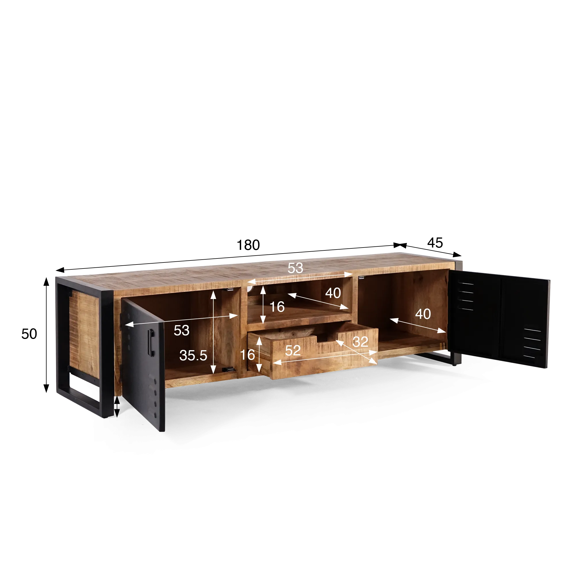 Kansas Tv-meubel in massief mangohout met metalen deur 180 cm – Kansas