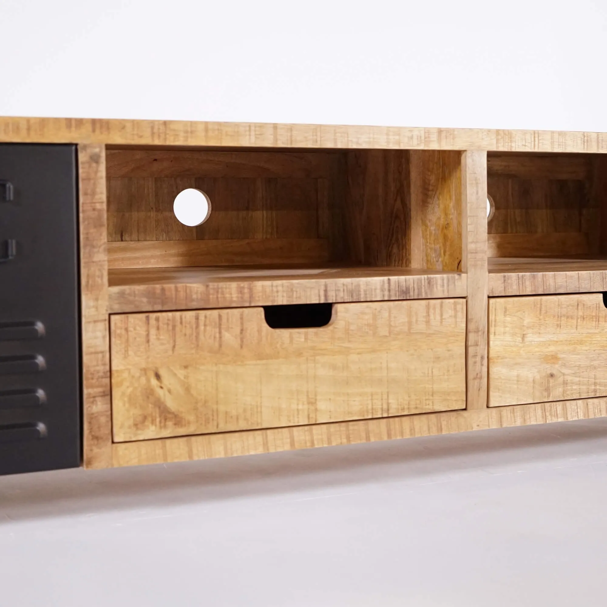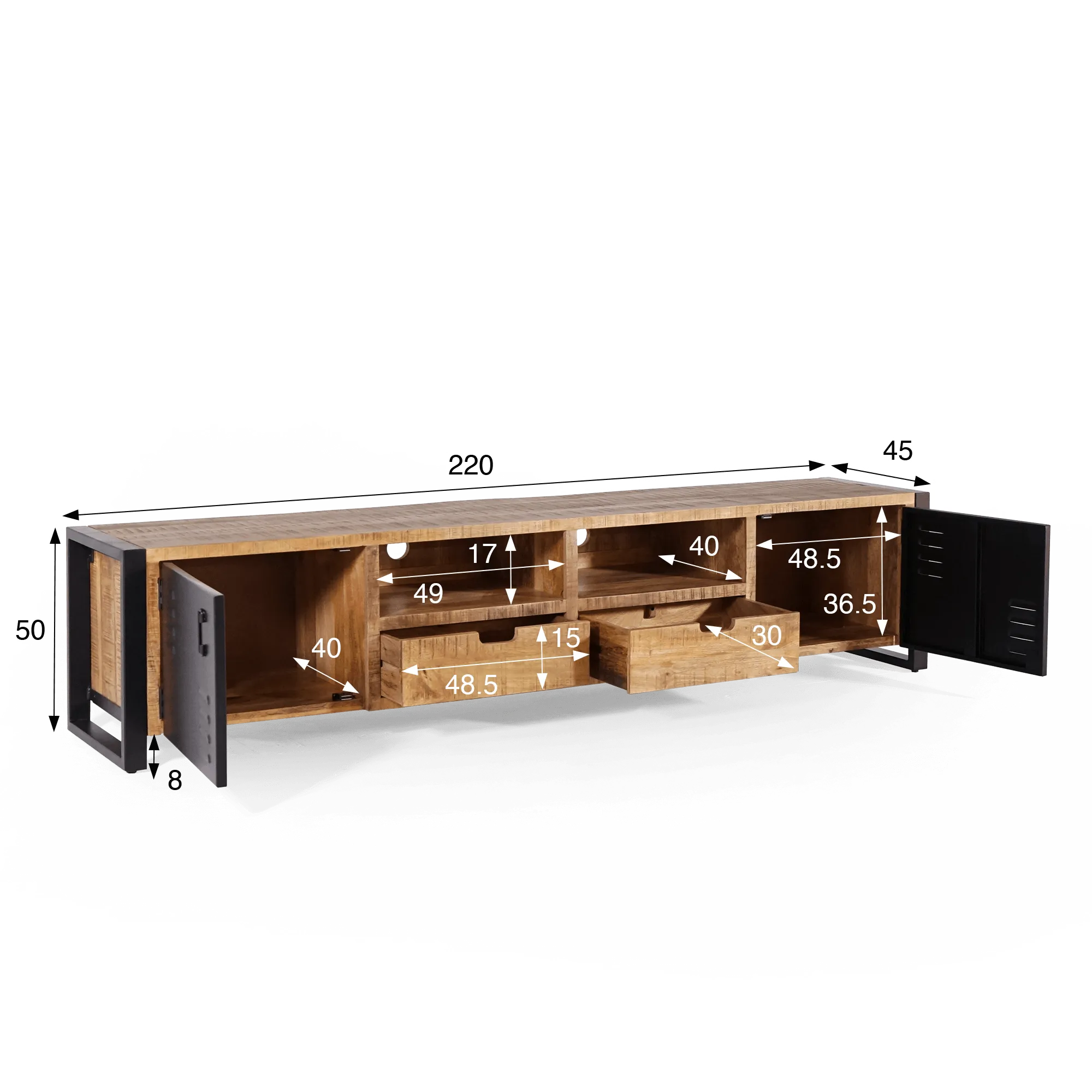 Kansas Tv-meubel in massief mangohout met metalen deur 220 cm – Kansas