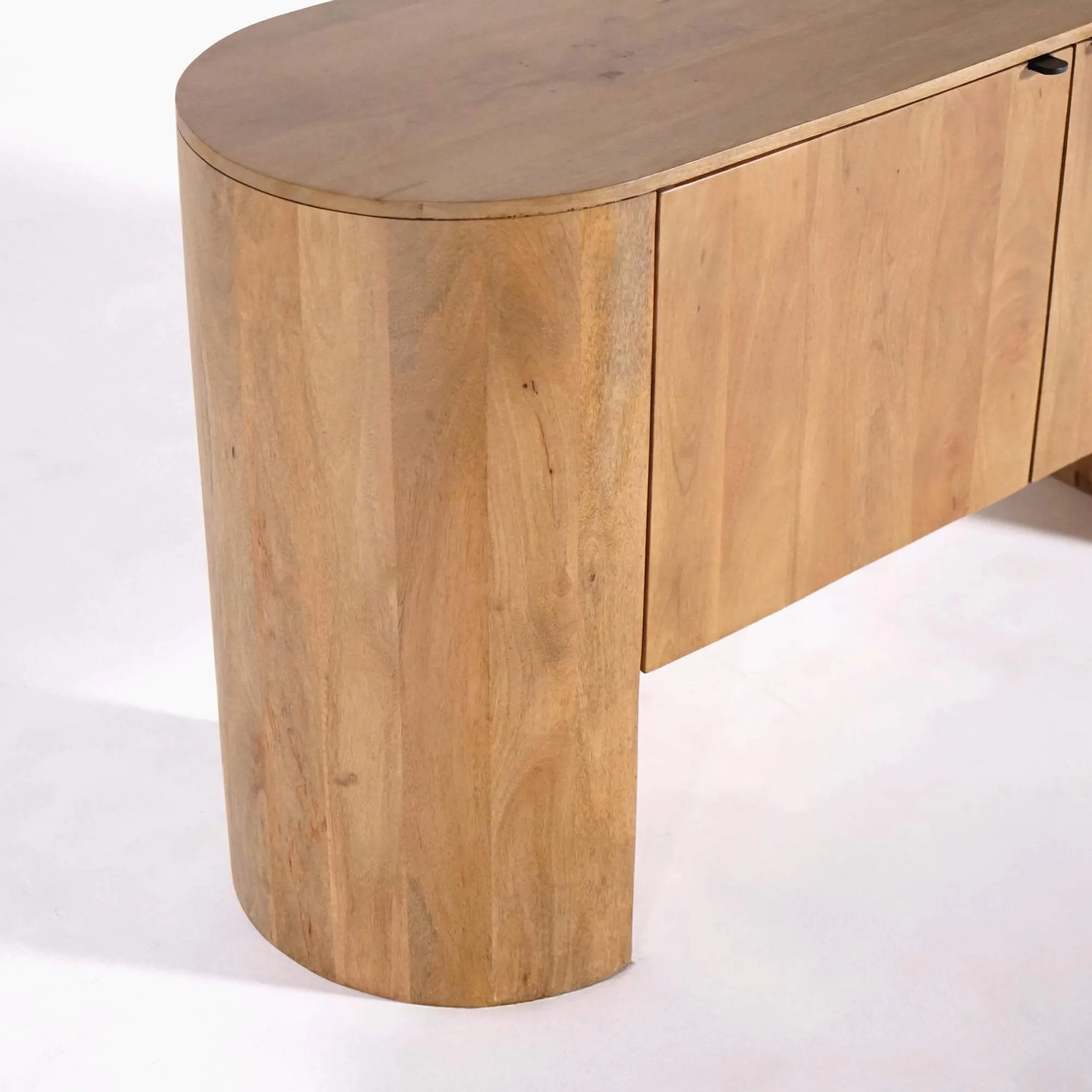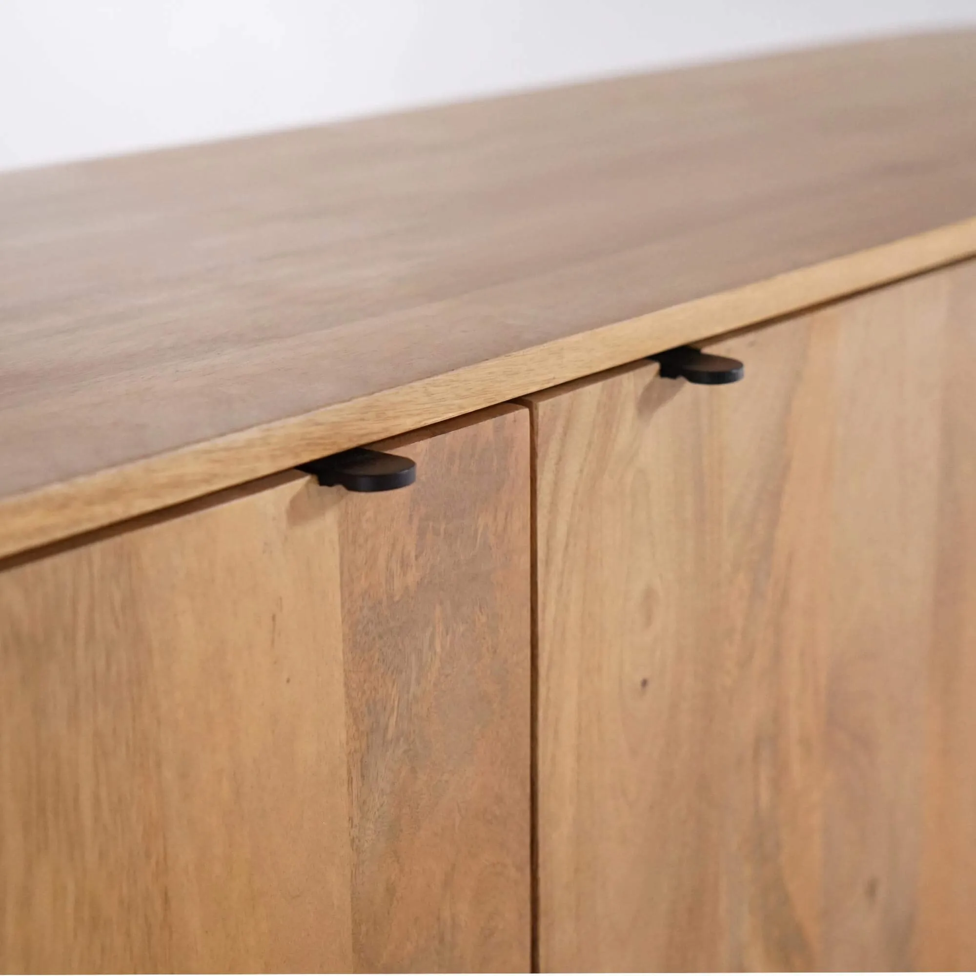 Gemaakt uit massief mangohout, onthult het massief houten dressoir met 2 deuren Timea een warm en levendig hout waarvan de natuurlijke nuances subtiel variëren naargelang het licht. De nerven blijven bewust zichtbaar en zorgen voor een visuele diepte die doorheen de dag evolueert. Het oppervlak voelt zacht aan en is zorgvuldig afgewerkt, zonder overmatige glans, om de authenticiteit van het materiaal te behouden. Deze directe, eerlijke relatie met het hout vormt de leidraad van de identiteit van de collectie.