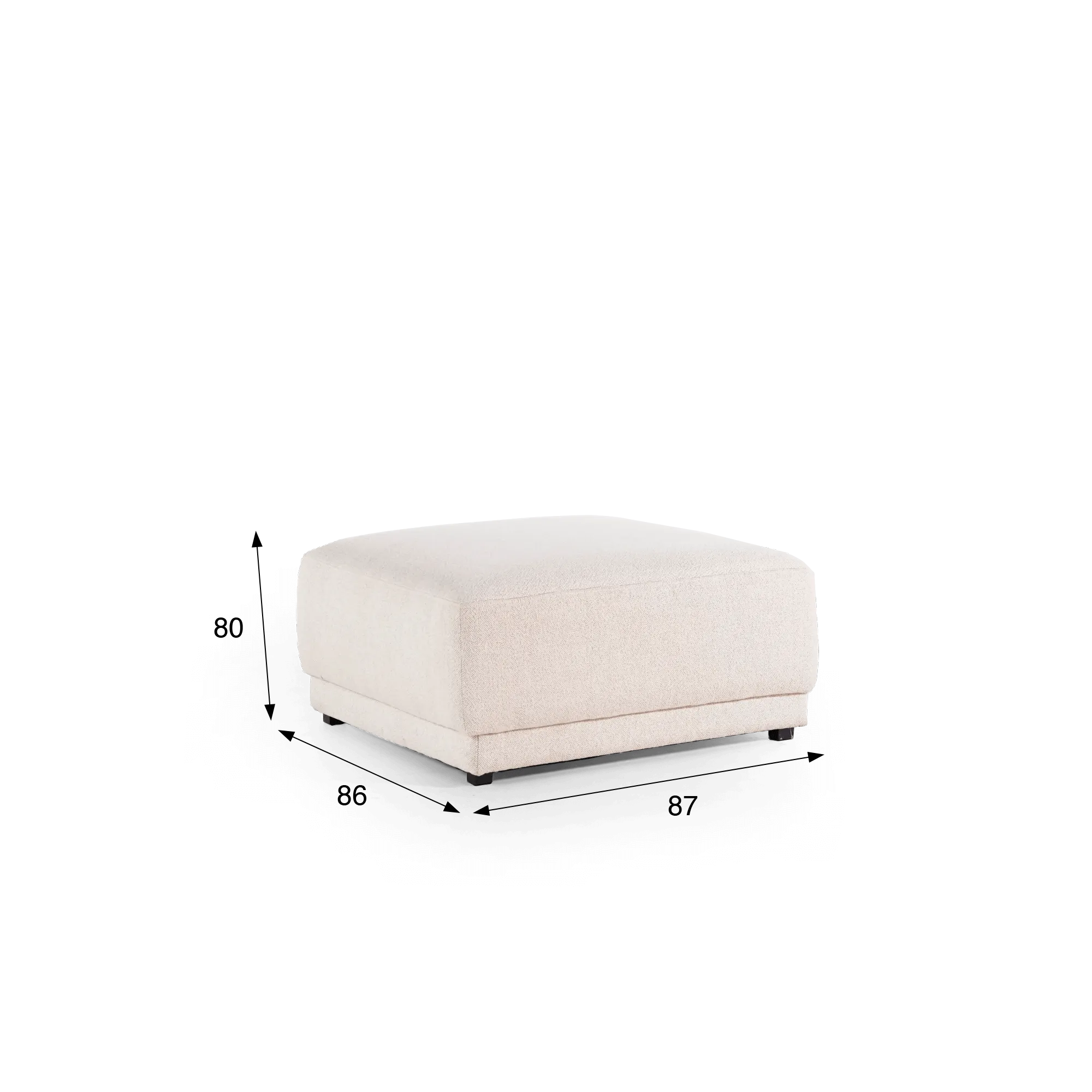 Met afmetingen van 87 cm bij 86 cm en een hoogte van ongeveer 44 cm is dit een veelzijdig element: een comfortabele voetenbank, een extra zitplaats of een geïmproviseerde salontafel – onze Elora stoffen poef past zich aan de behoeften van het moment aan. Dankzij zijn royale maar compacte formaat vindt hij makkelijk zijn plaats in een kleine woonkamer of een grote open ruimte.