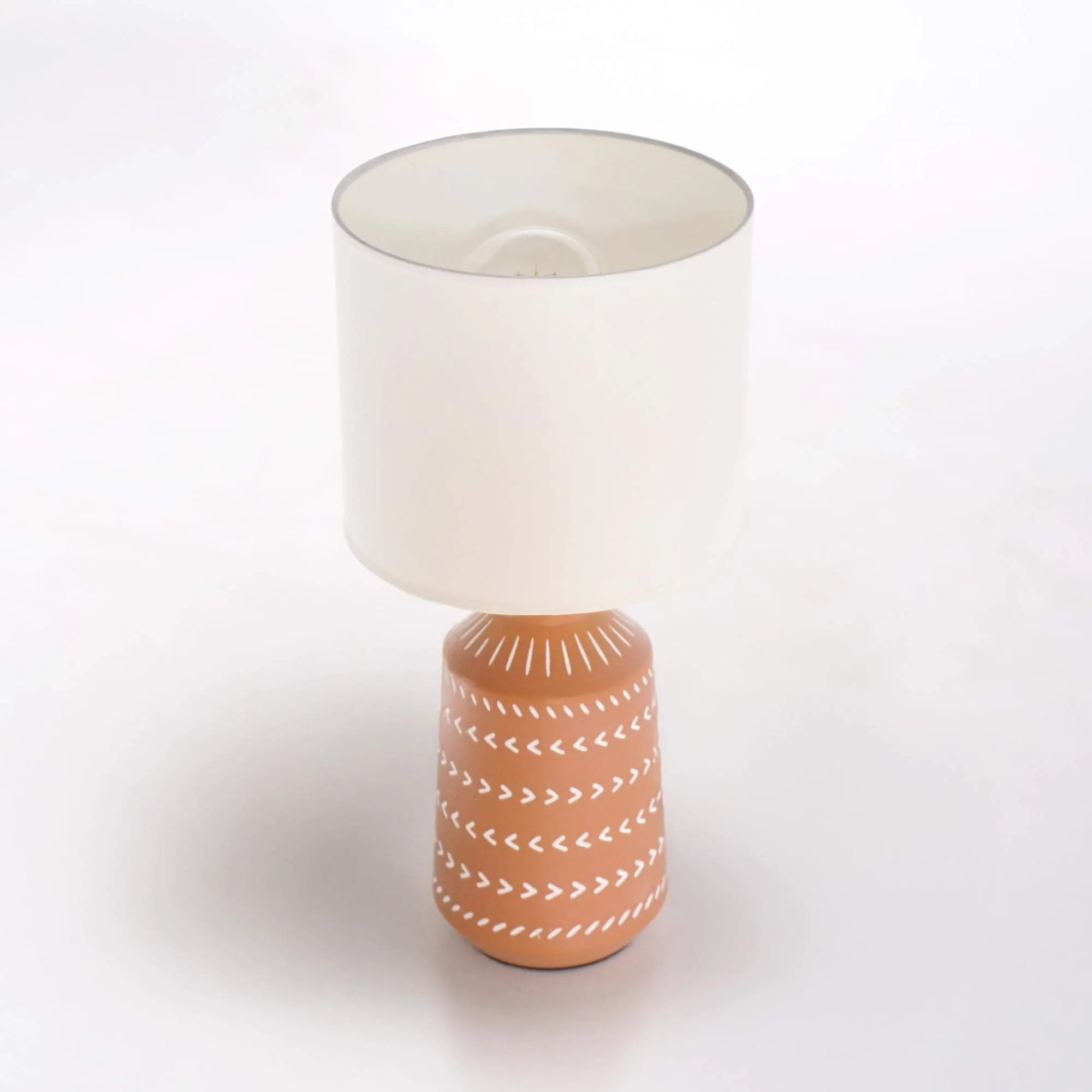 Ambachtelijke terracotta keramische lamp – handgeschilderd etnisch motief – Zahara