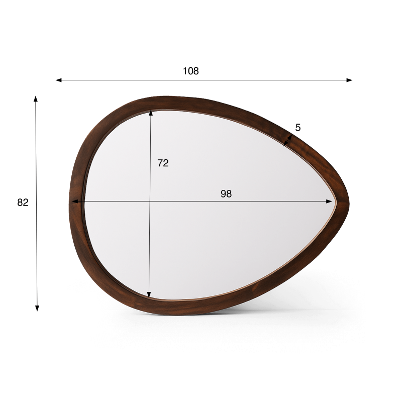 De vrije lijnen van deze spiegel met massief houten kader en organisch design, getekend als een door de tijd gepolijste kiezel, geven hem een uitstraling die tegelijk eigentijds en tijdloos is. De houten structuur, zorgvuldig met de hand gevormd, onthult delicate bruine nuances die variëren met het licht en de rijkdom van het natuurlijke materiaal benadrukken. Elk stuk is uniek, met subtiele kleurschakeringen en een eigen nerfstructuur – een handtekening van het vakmanschap dat wij bij BARAK 7 koesteren.
