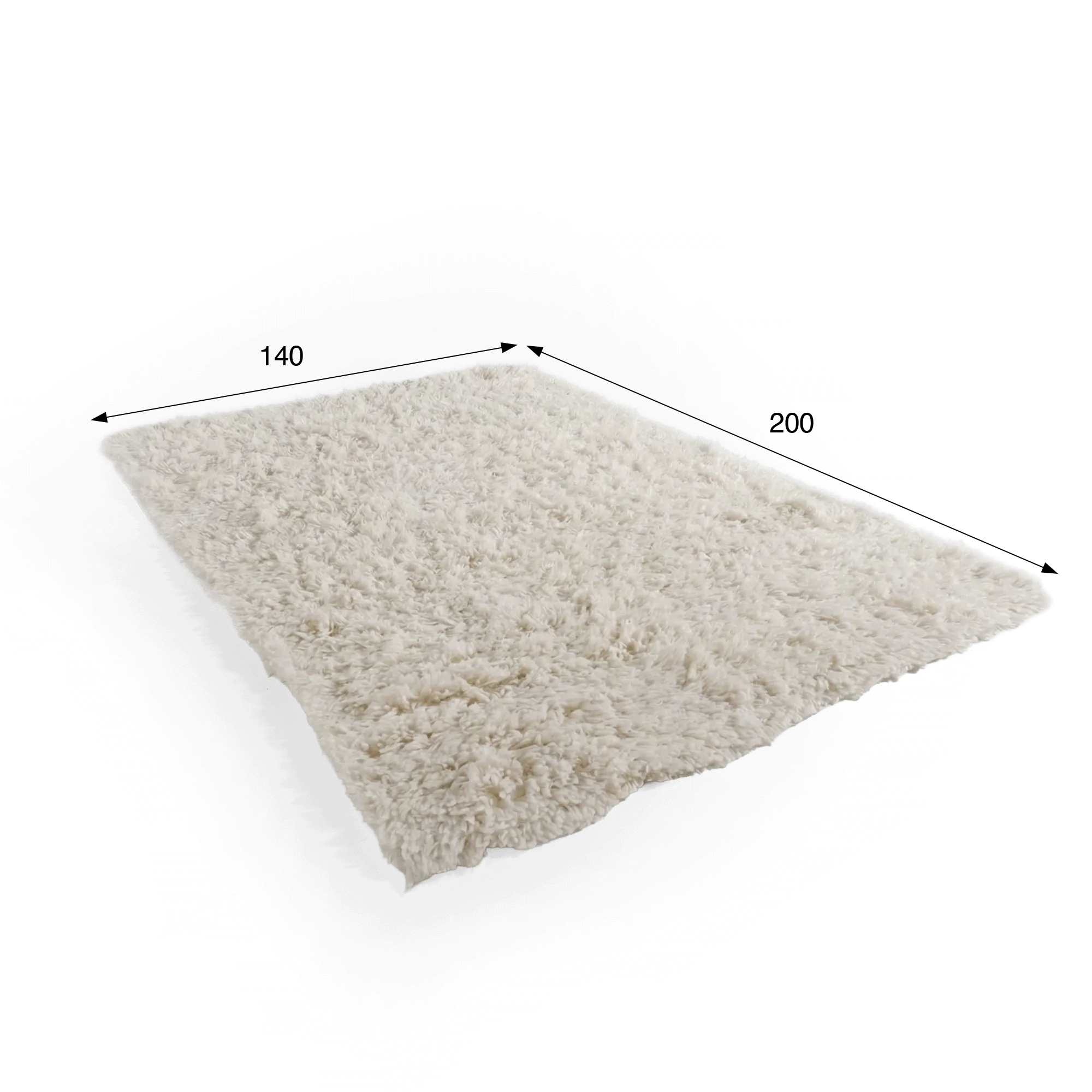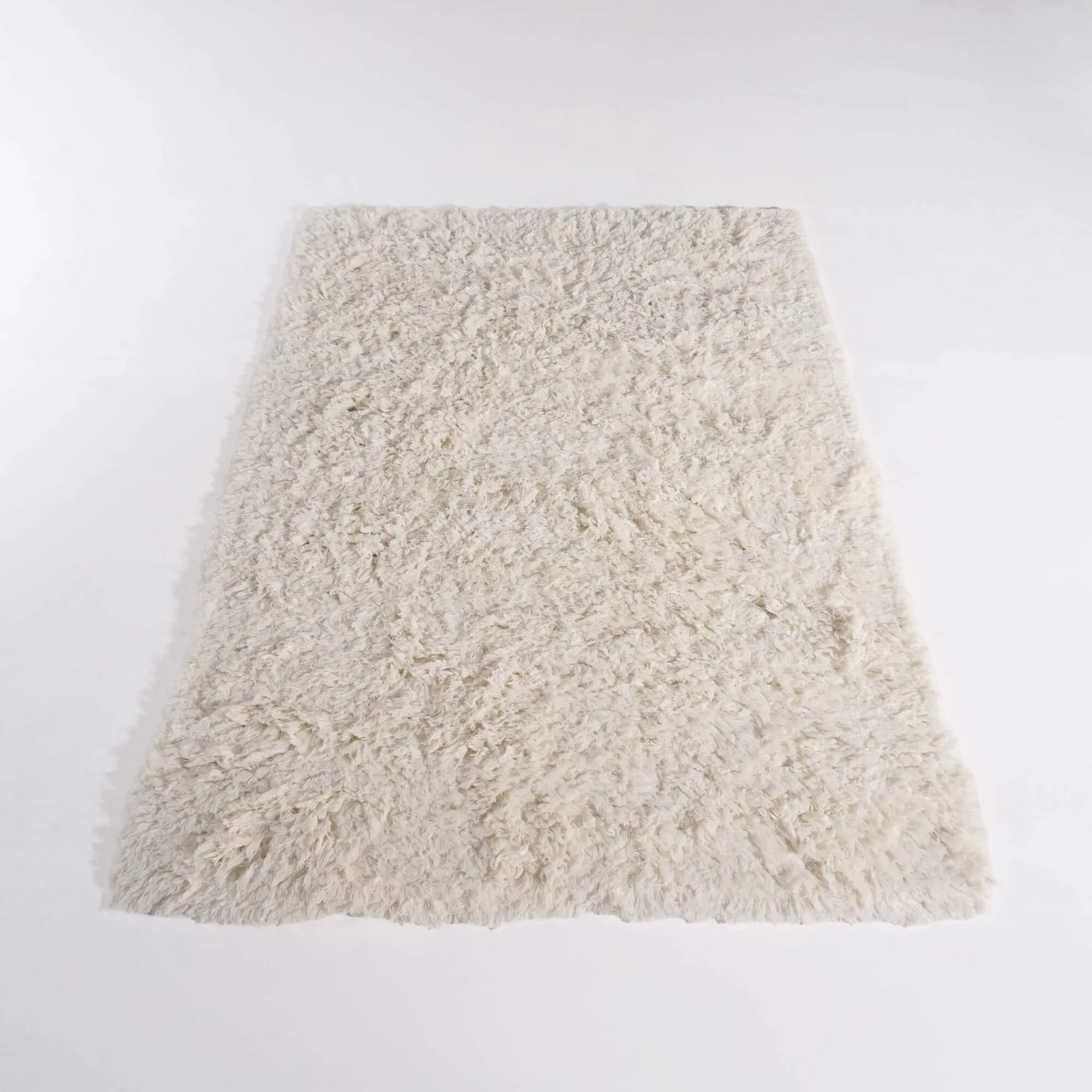 Het rechthoekige formaat van 140 × 200 cm is ontworpen om leefruimtes op een evenwichtige manier te structureren. Het wollen tapijt Ruma vindt vanzelf zijn plaats in de woonkamer, onder een salontafel of voor een zetel, maar past net zo goed in een slaapkamer of een leeshoek. De witte tint, genuanceerd door de wolvezels, vangt het licht en verspreidt een gevoel van helderheid, terwijl het tegelijk een visuele warmte behoudt die elke kilte vermijdt.