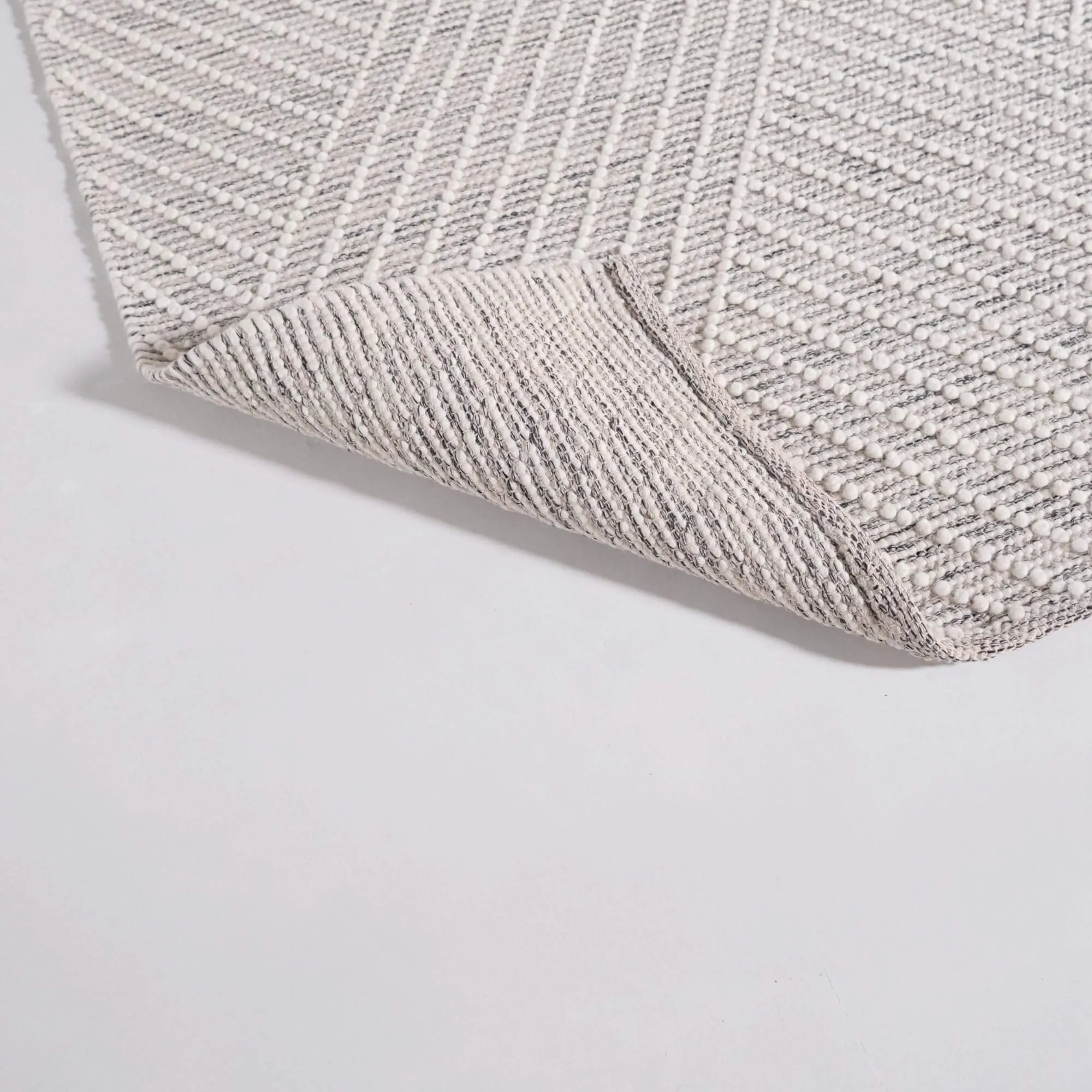 Het geometrische dessin van dit wollen tapijt, opgebouwd uit schuine lijnen en spel van weefstructuren, roept een etnische sfeer op die met soberheid werd herinterpreteerd. Het brengt ritme in de vloer, terwijl het voldoende zacht blijft om zowel in een strak interieur als in een warmere leefruimte tot zijn recht te komen. Met zijn formaat van 140 x 200 cm vindt het Arvo wollen tapijt vanzelf zijn plaats voor een sofa, in een leeshoek of om een ontspanningsruimte subtiel af te bakenen.