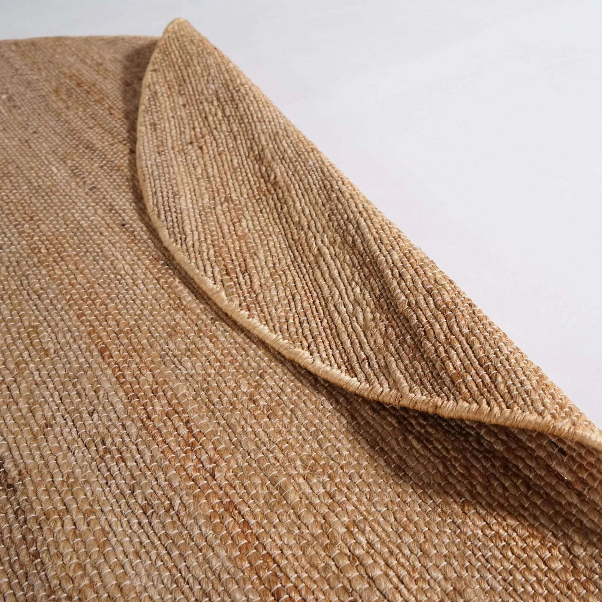 In het dagelijks gebruik onderscheidt dit juten tapijt zich door zijn robuustheid. Het materiaal is bestand tegen intensief gebruik en behoudt tegelijk zijn getextureerde, licht onregelmatige uitstraling, die zowel visueel als tactiel wordt gewaardeerd. Bijzondere aandacht werd besteed aan de afwerking van de rand: de boord van dit ronde juten tapijt is zorgvuldig afgewerkt om een duurzame vormvastheid en een harmonieuze, perfect cirkelvormige silhouet te garanderen.
