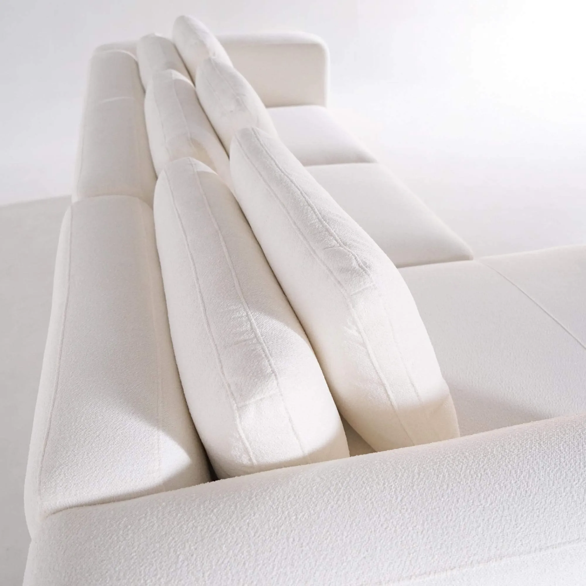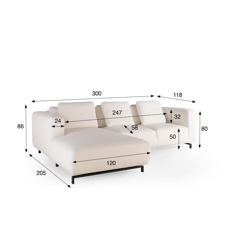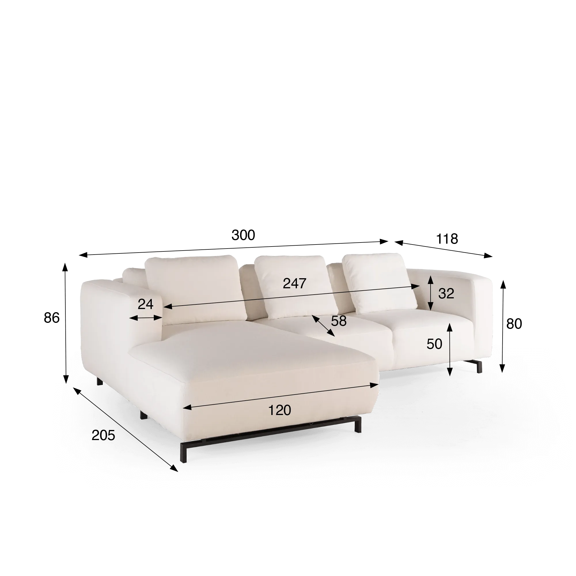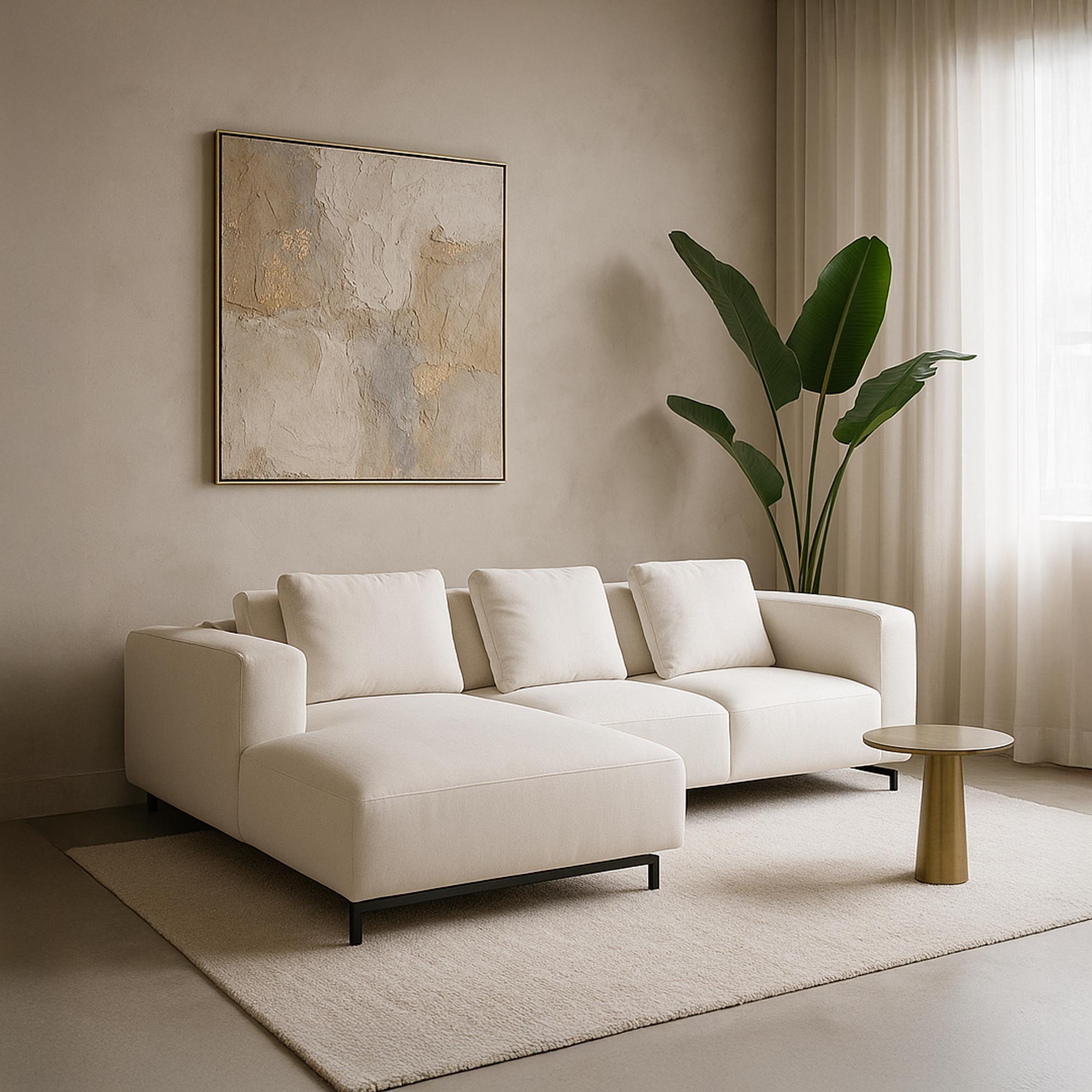Wij ontwierpen de hoekzetel met linkerchaise longue voor 4 personen Miro als de meest verfijnde uitdrukking van hedendaags comfort. Ontworpen om gezellige momenten met familie of vrienden te beleven, combineert hij een minimalistisch design met royale proporties. Met zijn linkerchaise longue en evenwichtige lijnen nodigt deze hoekzetel uit tot gezelligheid, terwijl hij een ingetogen elegantie behoudt. Zijn vloeiende silhouet en diepe zit creëren een ruimte die tegelijk uitnodigend en gestructureerd aanvoelt — ideaal voor moderne interieurs waar eenvoud en verfijning hand in hand gaan.