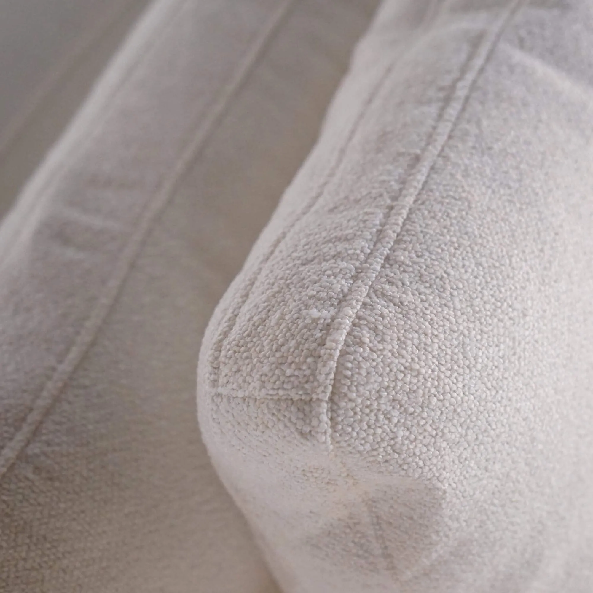 De stof van onze Miro-hoekzetel met linkerchaise longue valt op door zijn zachte, licht getextureerde structuur die aangenaam aanvoelt en bestand is tegen dagelijks gebruik. Dankzij de beschermende behandeling is hij gemakkelijk te onderhouden, terwijl de hoge dichtheid een uitstekende vormvastheid garandeert. De lichte, heldere tint van de stof benadrukt de zuiverheid van het design en past moeiteloos in elke interieurstijl — van Scandinavisch minimalisme tot een warm en eigentijds decor.