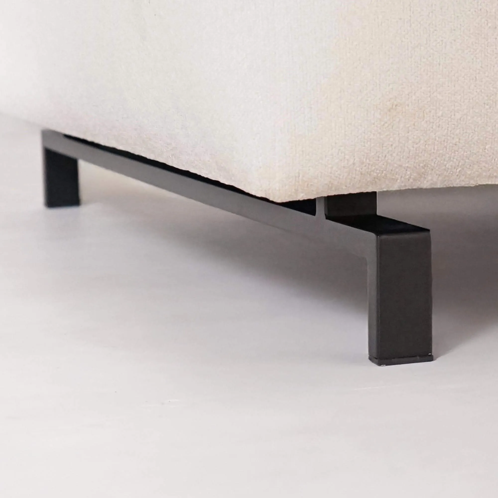 De fijne, matzwarte metalen poten geven het geheel een gevoel van lichtheid en versterken tegelijk het moderne karakter van deze hoekzetel met linkerchaise longue. Hun sobere geometrie contrasteert subtiel met de zachtheid van de stof en voegt een grafisch accent toe aan het ontwerp.