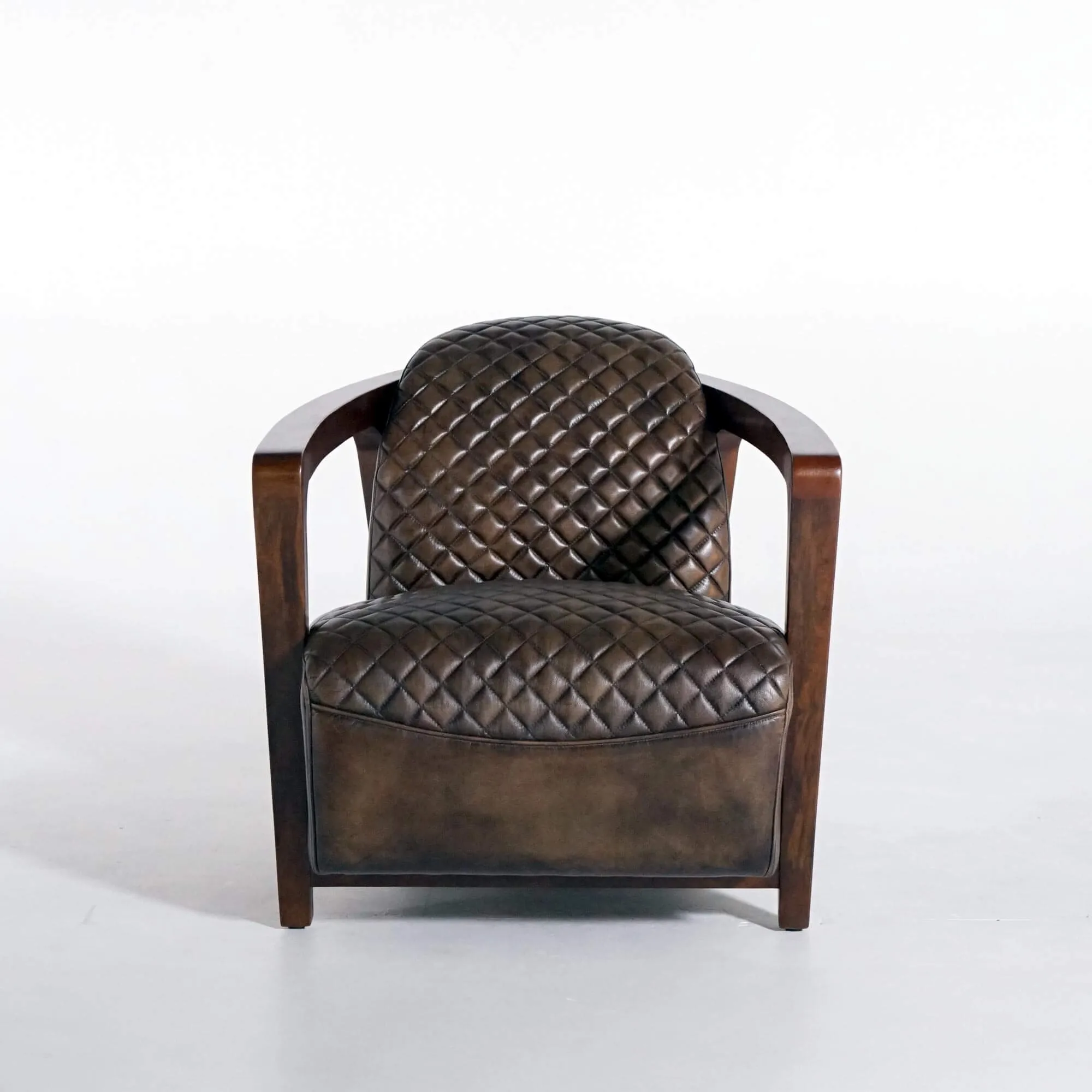 Het volnerfleer, bij dit model met een verfijnde patina afgewerkt, toont een natuurlijke nerf en voelt vol en rijk aan. Het ruitpatroon accentueert het ambachtelijke karakter van het stuk en verhoogt bovendien het zitcomfort. De rugleuning van deze leren fauteuil helt licht achterover en volgt je rug op een intuïtieve manier, terwijl de royale zitting een zitdiepte van ongeveer 54 cm biedt voor een echt moment van ontspanning. In gebruik zal het leer zachtjes evolueren, soepeler worden en aan karakter winnen. De verhoudingen van de leren fauteuil Graham zijn ontworpen voor elke dag: 75 cm totale hoogte, 72 cm breedte en 91 cm diepte, waardoor hij zich even vlot laat plaatsen in een ruime woonkamer als in een meer intiem bureau.