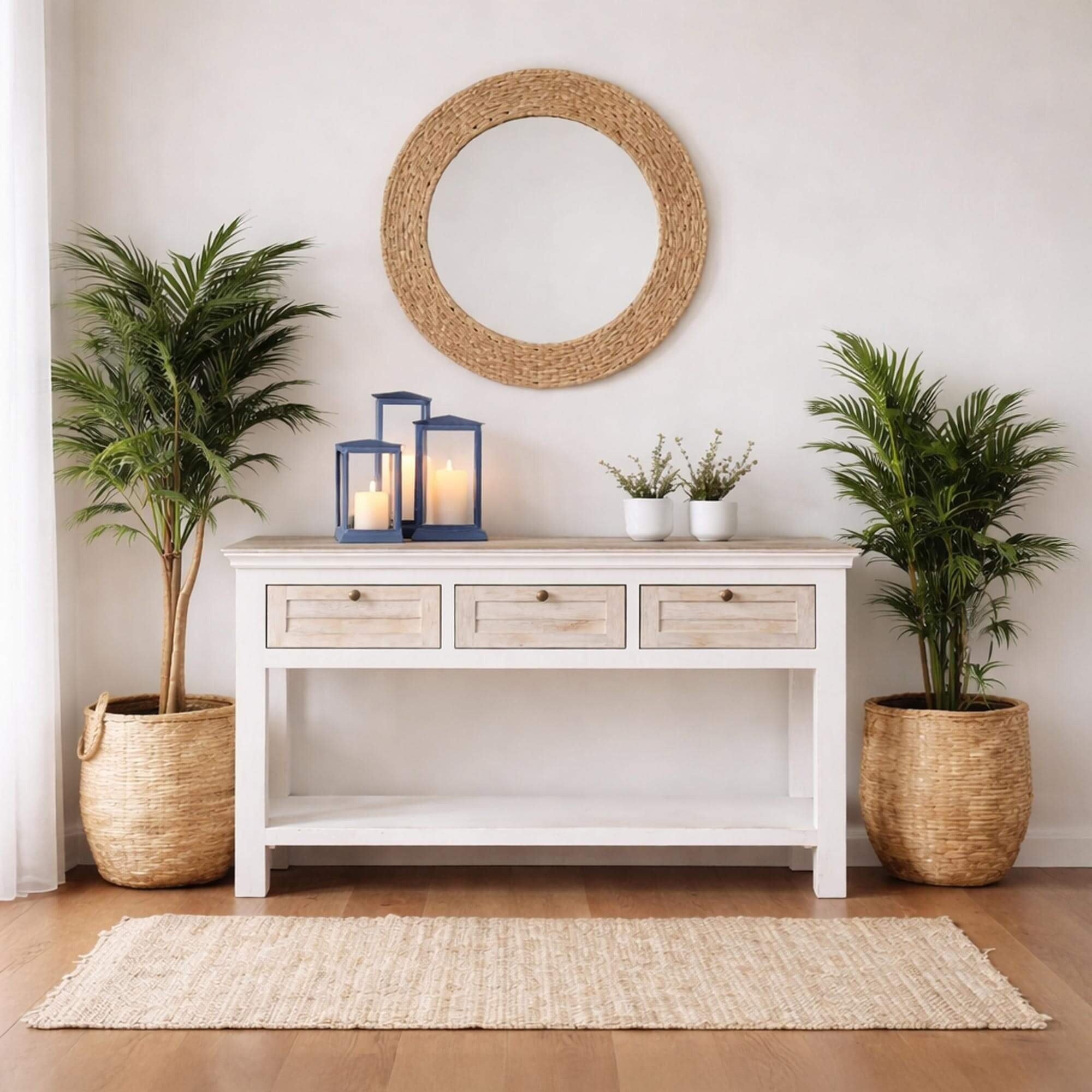 In de collectie Sea Side hebben we een halconsole in wit massief hout ontworpen die de zachtheid van kustinterieurs oproept, met die lichte, serene sfeer die je terugvindt in huizen aan zee. Onze designers wilden een meubel dat je meteen bij het binnenkomen verwelkomt: discreet maar warm, klaar om het dagelijkse leven te organiseren én tegelijk charme te geven aan de inkom.