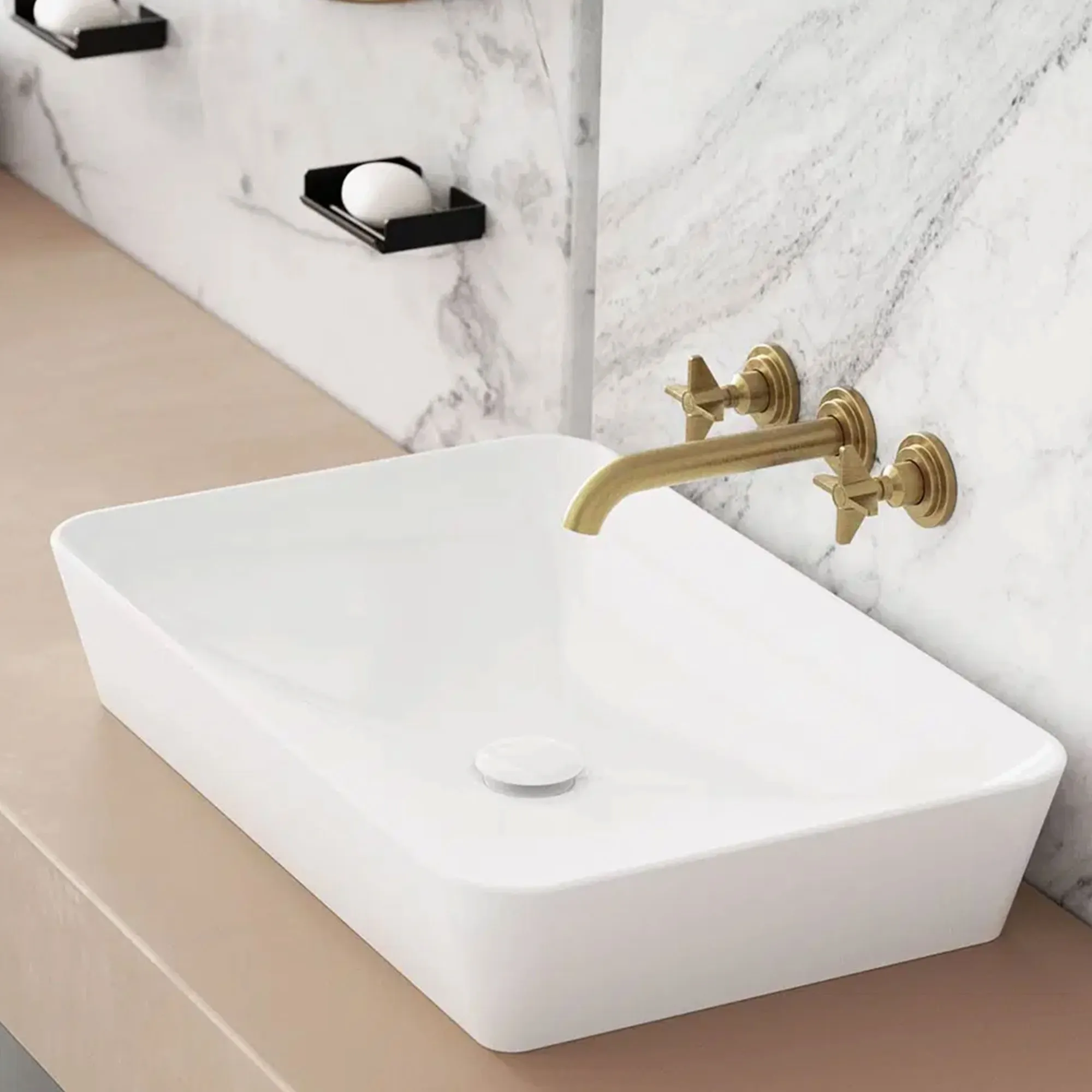 Bovenafsluiter voor wastafel, klik-klak met metalen manchet, universeel, wit keramiek