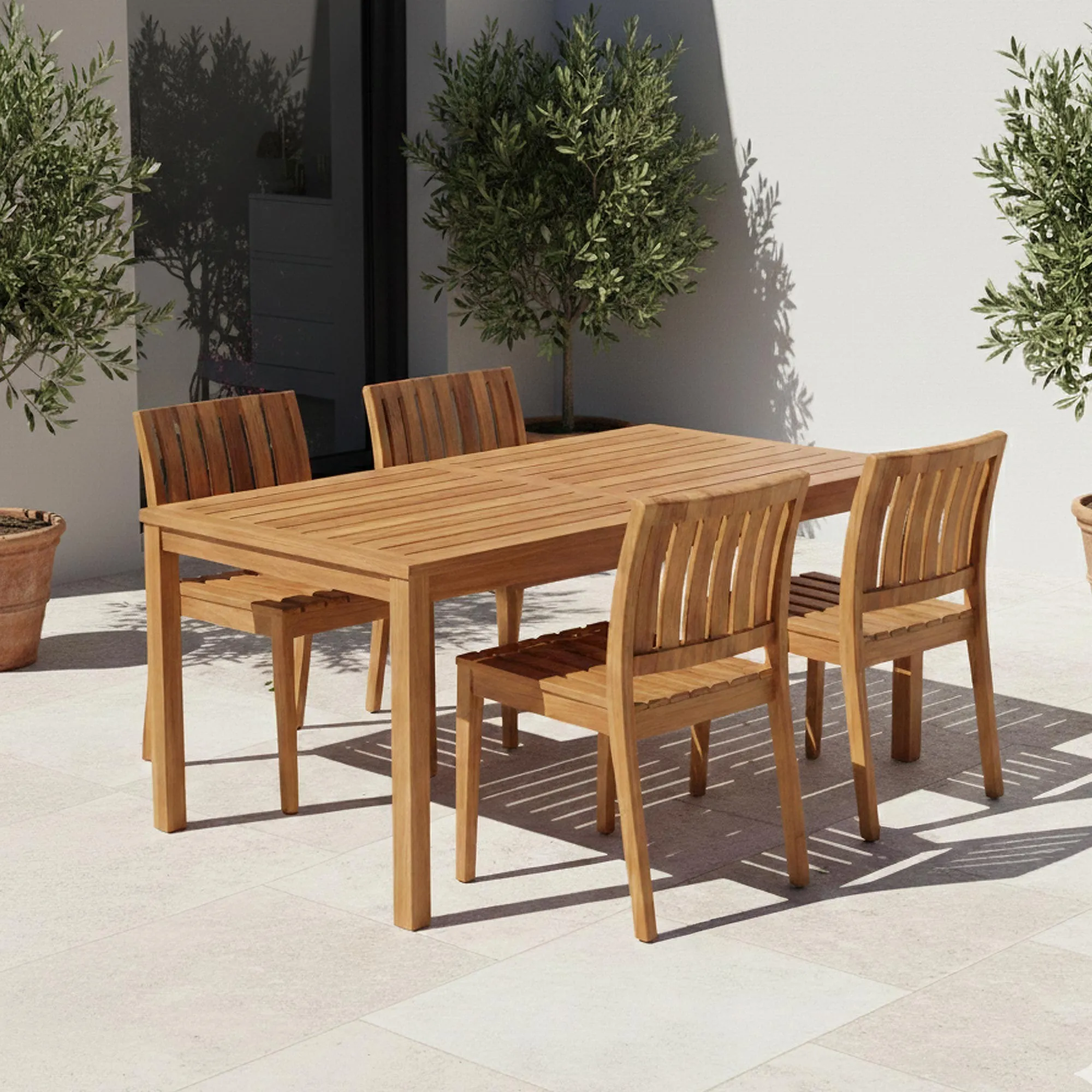 De tuinhouten stoel in teakhout Juno is ontstaan uit onze wens om een buitenstoel te ontwerpen die tegelijk eenvoudig, warm en duurzaam is. Al vanaf de eerste schetsen wilden onze designers een stoel creëren die zich vanzelfsprekend laat inpassen in elke buitenruimte, of het nu gaat om een hedendaags terras, een lichtrijke patio of een tuin omringd door groen. Met de tuinhouten stoel in teak Juno bedachten we een evenwichtig silhouet, waarbij elke lijn bijdraagt aan het gevoel van comfort en visuele lichtheid.