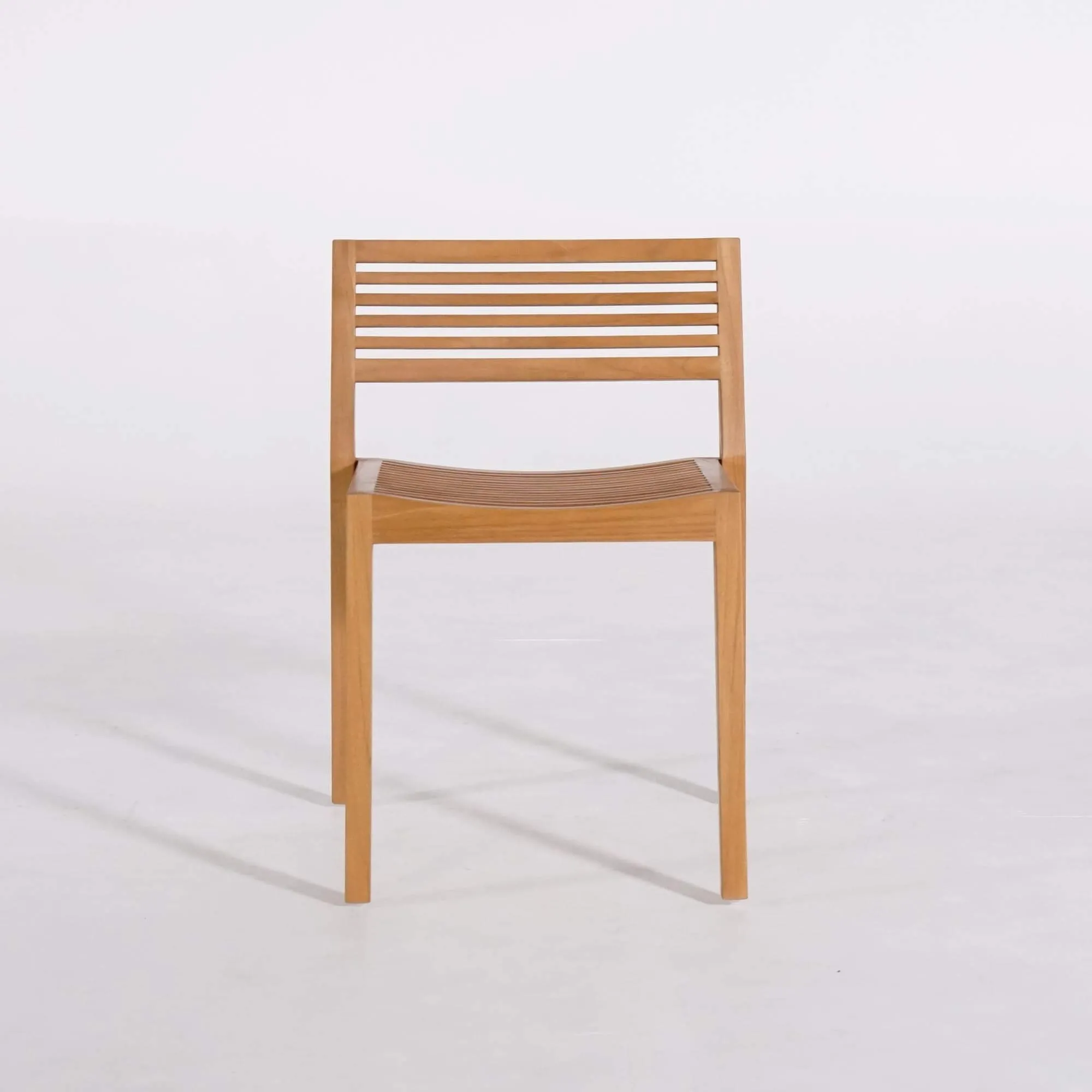 De poten in massief hout zetten die zoektocht naar balans voort en zorgen elke dag opnieuw voor een betrouwbare stabiliteit. We wilden bovendien dat de tuinstoel in teak Kaito praktisch is in gebruik: hij wordt gemonteerd geleverd en is gemakkelijk stapelbaar wanneer je ruimte wil vrijmaken of hem buiten het seizoen wil opbergen.