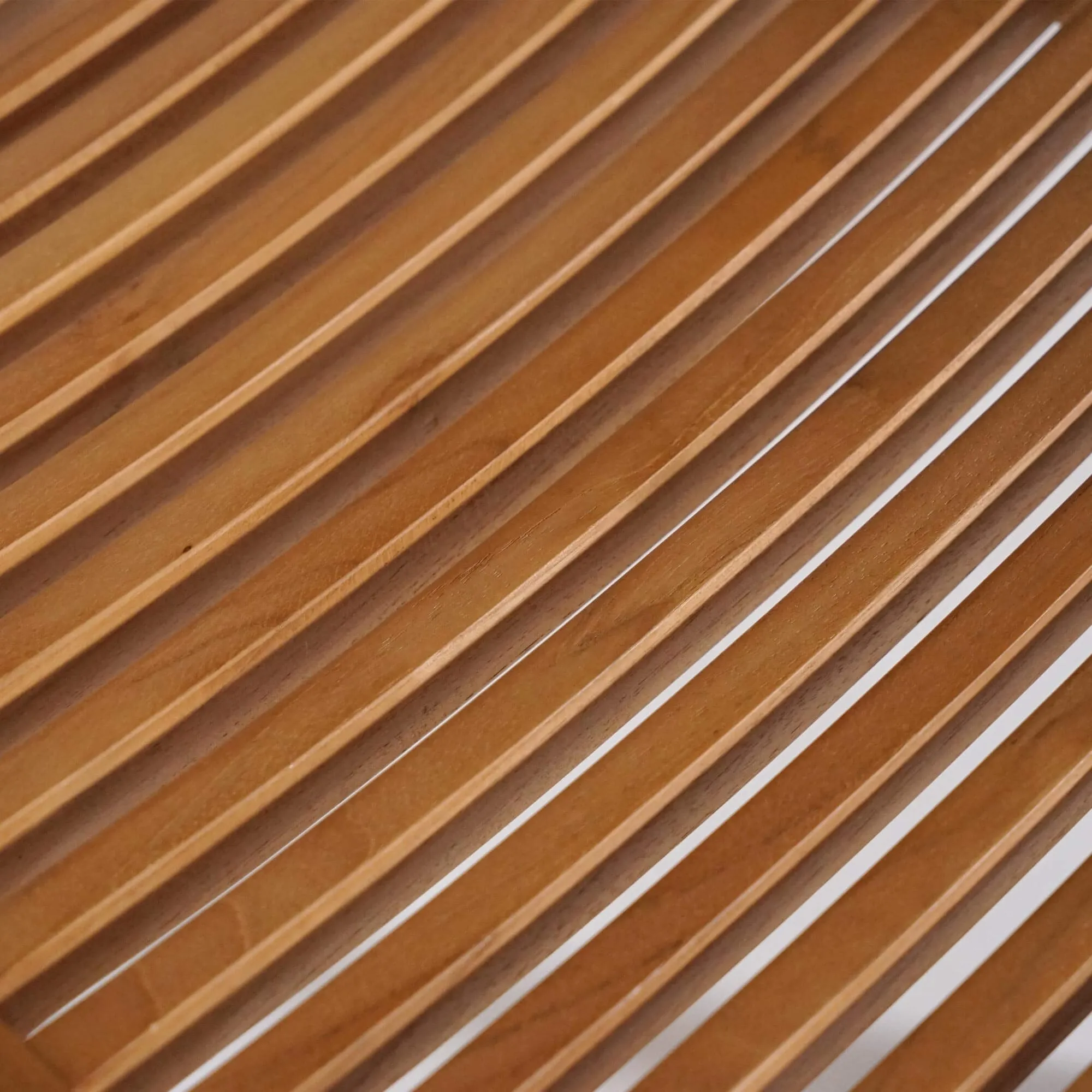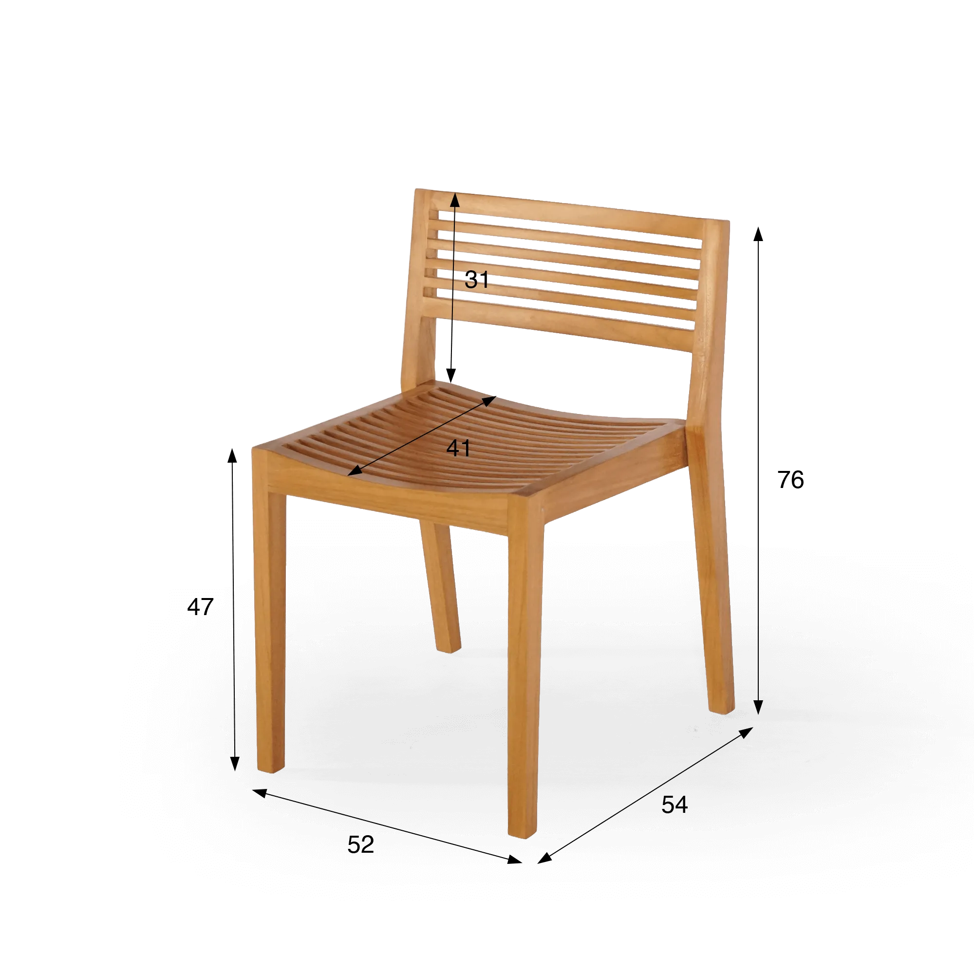 Het ontwerp van de tuinstoel in teak Kaito wordt gekenmerkt door strakke lijnen en een subtiele lattenstructuur. De rugleuning, opgebouwd uit fijne horizontale regels, biedt aangename ondersteuning en behoudt tegelijk een lichte, luchtige uitstraling. De licht gebogen zitting, gevormd door nauwkeurig geplaatste teakhouten latten, volgt vanzelf de houding van het lichaam en verhoogt het comfort bij lange maaltijden in de buitenlucht. Met een zitbreedte van ongeveer 41 cm en een rugleuning van ongeveer 31 cm hoog vindt de tuinstoel in teak Kaito een mooi evenwicht tussen compactheid en welzijn.