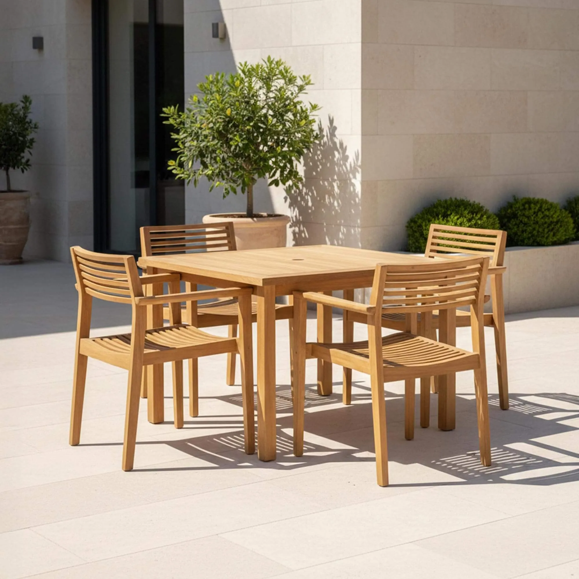 De tuinhouten stoel in teak Naito is ontstaan vanuit onze wens om een buitenzitmeubel aan te bieden dat tegelijk uitnodigend en duurzaam is, en dat vanzelf meegroeit met gezellige momenten in de buitenlucht. Bij het ontwerp kozen onze designers voor een eenvoudige, evenwichtige benadering, waarbij elke lijn precies op haar plaats valt. Het resultaat is een tuinhouten stoel in teak met een modern ontwerp, gekenmerkt door strakke lijnen en een lichte silhouet dat zich moeiteloos laat combineren rond een tuintafel of op een terras dat baadt in het licht.