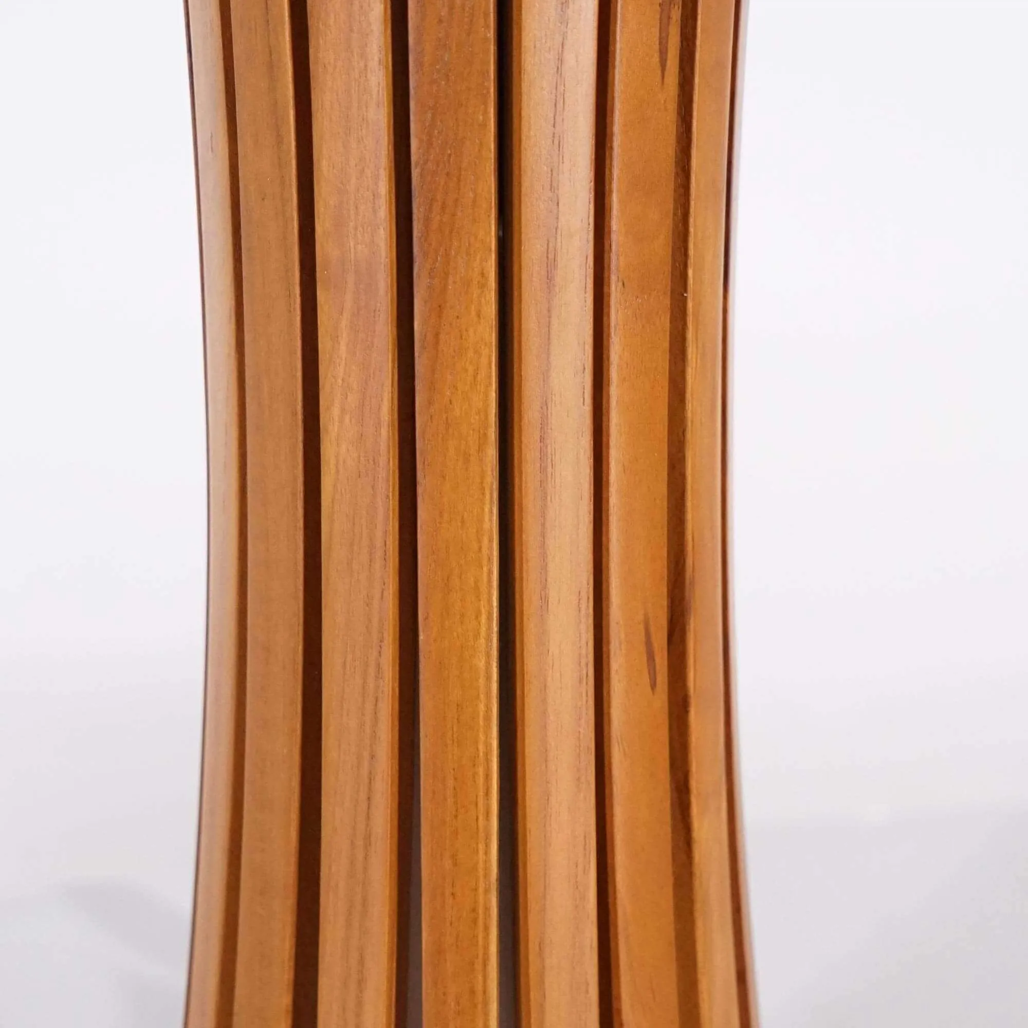 Gecombineerd met ons buitenmeubilair in massief teak draagt de vloerlamp in teakhout bij aan een coherente en natuurlijke sfeer, waarin materialen in alle eenvoud met elkaar in dialoog gaan om een harmonieuze en uitnodigende ruimte te creëren.