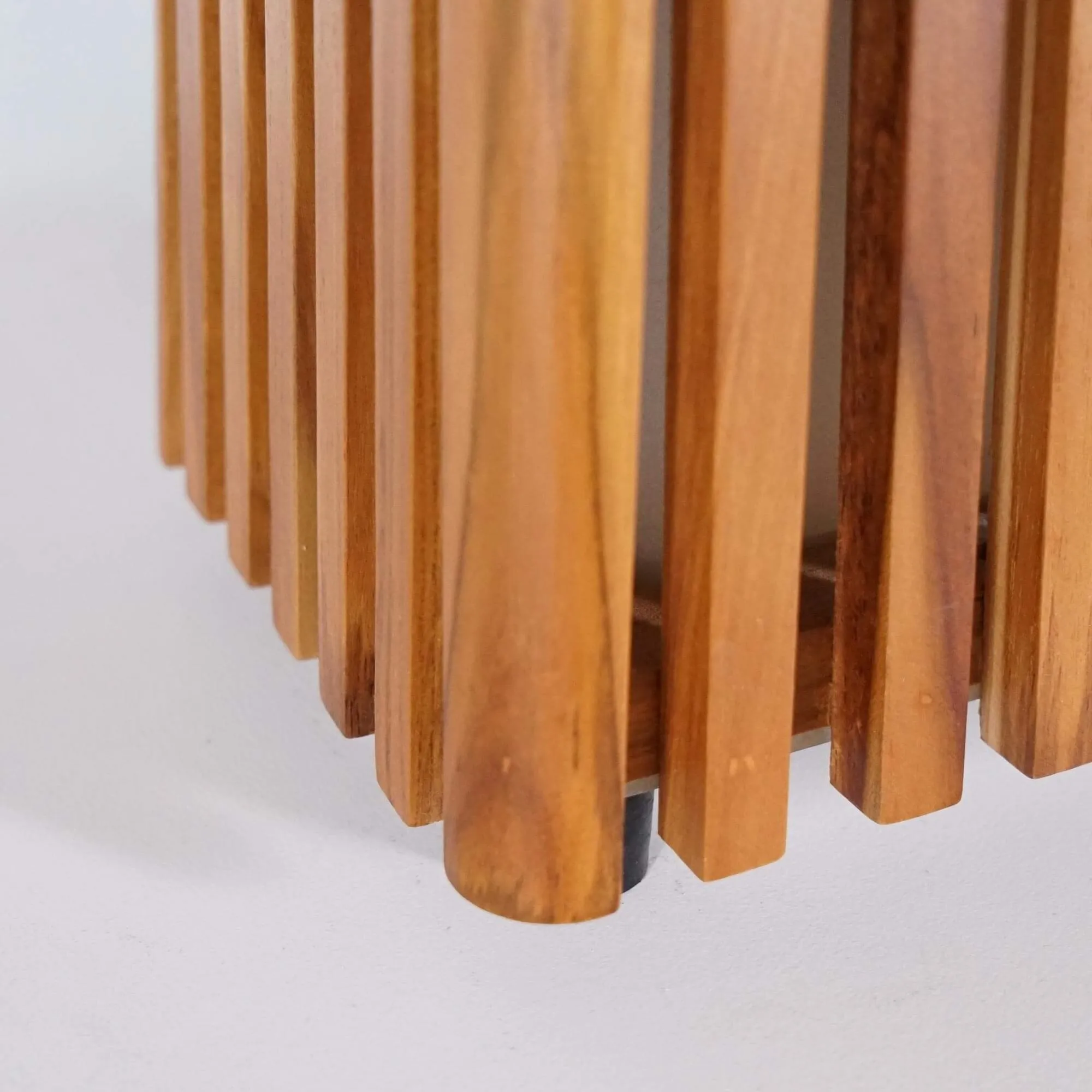 Teak is een houtsoort die we bijzonder waarderen voor meubels en armaturen voor buiten. Door zijn dichtheid en natuurlijke weerstand tegen weersinvloeden is het een ideaal materiaal om de seizoenen te doorstaan zonder aan karakter in te boeten. Elk stuk toont de warme nuances van het hout, de kleurvariaties en de van nature zachte touch, wat deze lamp een authentieke en levendige aanwezigheid geeft.