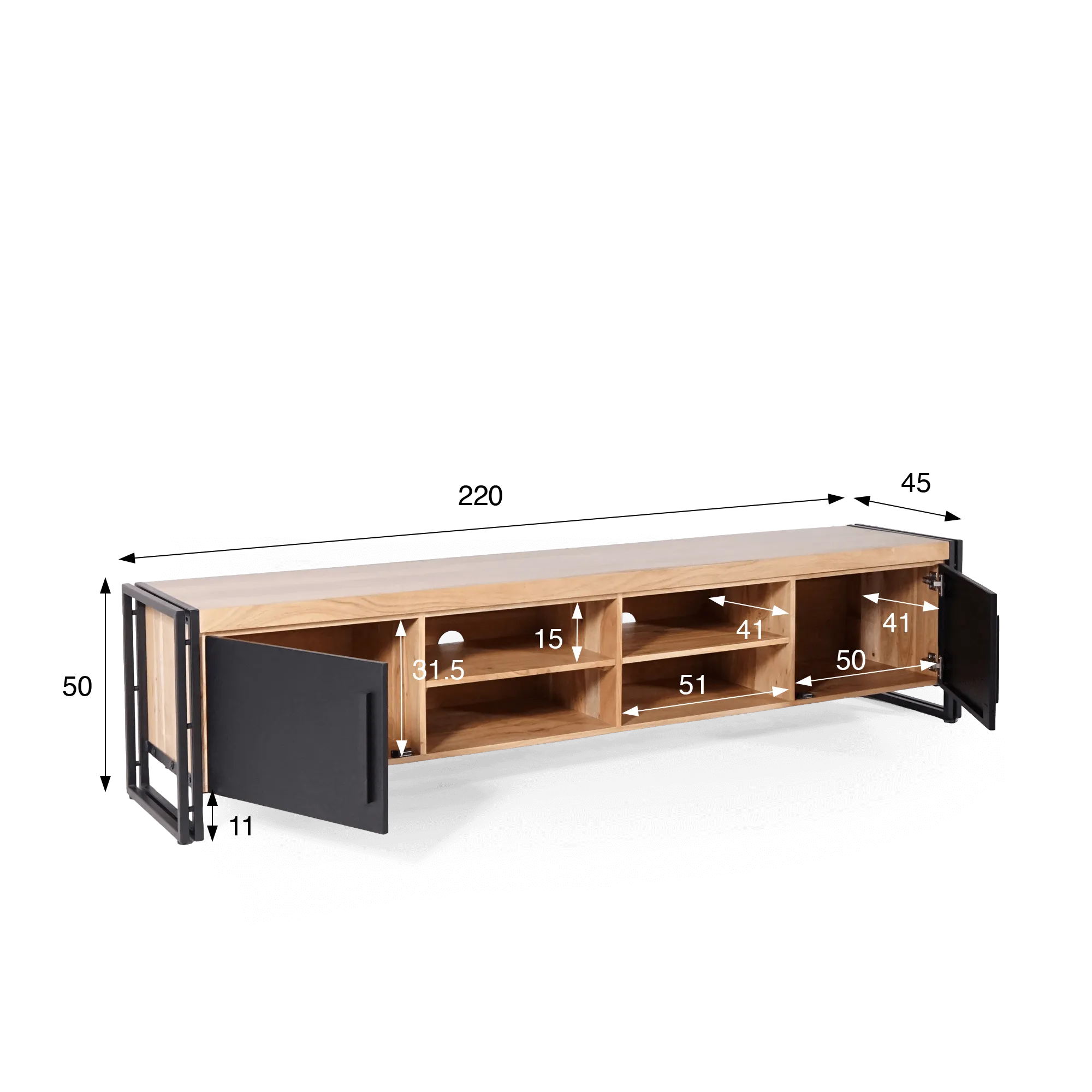 Tv-meubel in hout en metaal 220 cm - Liverpool 220 x 45 x 50 cm