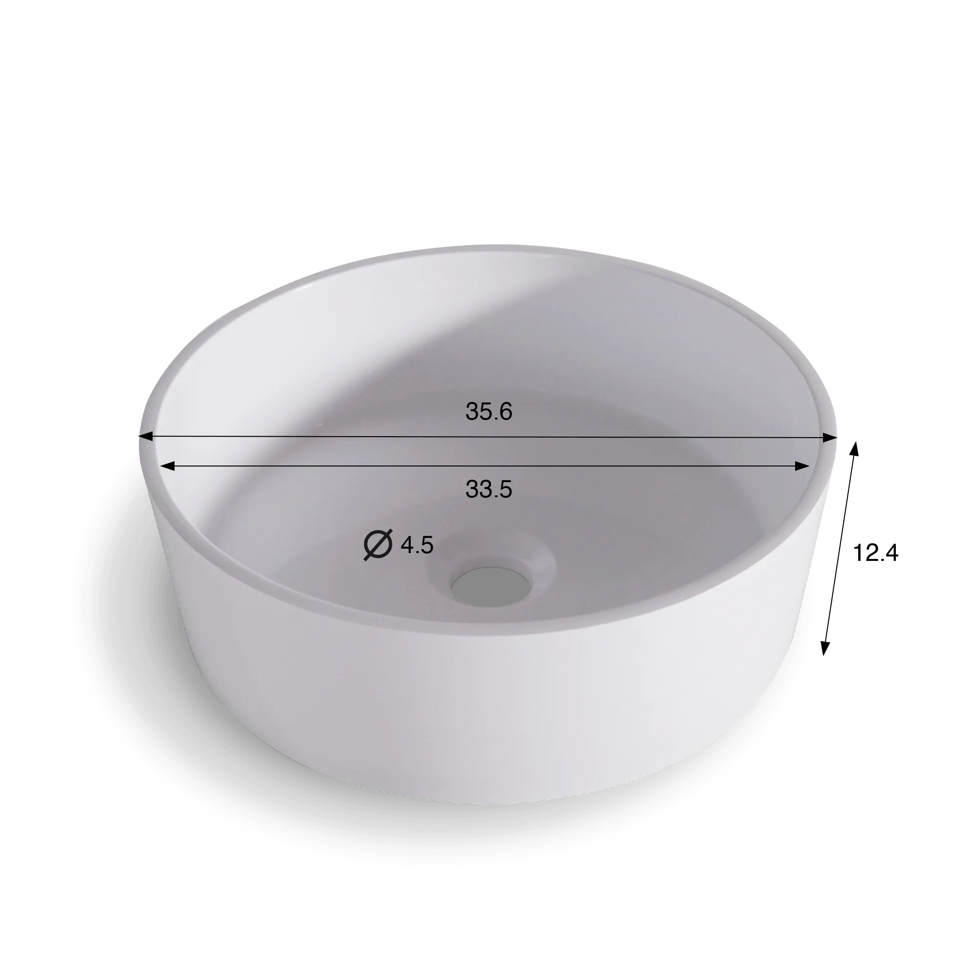 Ronde keramische waskom, glanzend wit – Rundo 35,6 x 35,6 x 12,4 cm