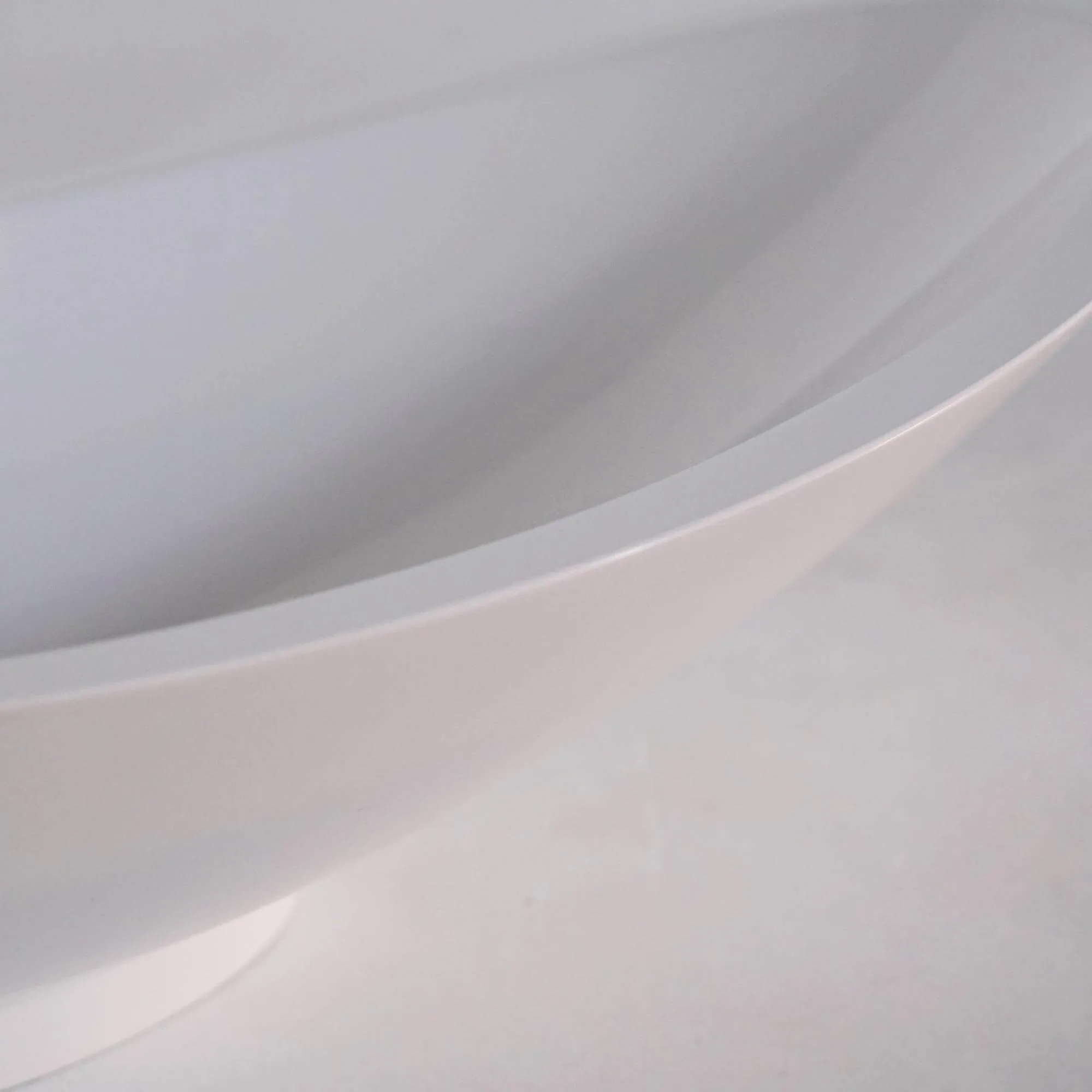Met de ronde keramische wastafel in glanzend wit, Bora, wilden we een ontwerp creëren dat visuele zachtheid combineert met functionele precisie. De vloeiende, uitgerekte en subtiel asymmetrische vorm geeft het wastafelblad een verfijnde uitstraling zonder de ruimte ooit te verzwaren. Het glanzend witte oppervlak van de keramiek vangt het licht op delicate wijze en creëert natuurlijke reflecties die het gevoel van puurheid en frisheid in de badkamer versterken.