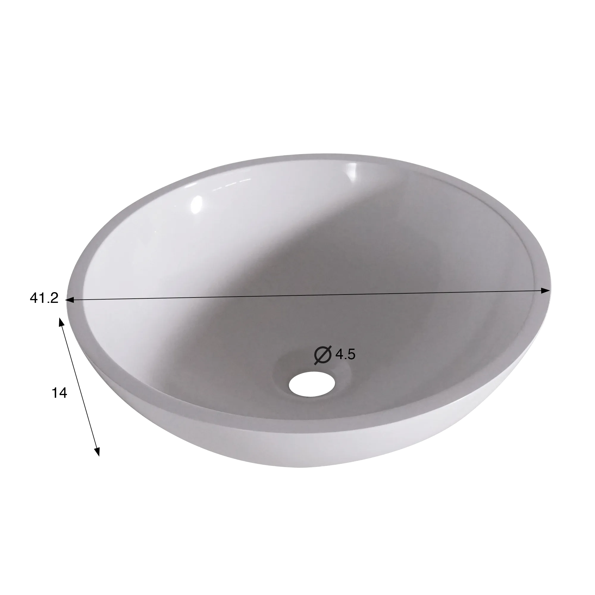 Met een diameter van ongeveer 41 cm en een hoogte van 14 cm biedt de opzetwaskom in glanzend witte keramiek Bora ideale proporties voor comfortabel dagelijks gebruik. De goed doordachte diepte beperkt waterspatten, terwijl de afvoeropening van 4,5 cm discreet in het geheel wordt geïntegreerd. Geplaatst op een massief houten meubel of op een meer mineraal vormgegeven blad, ontstaat een harmonieus contrast tussen warmte en moderniteit.