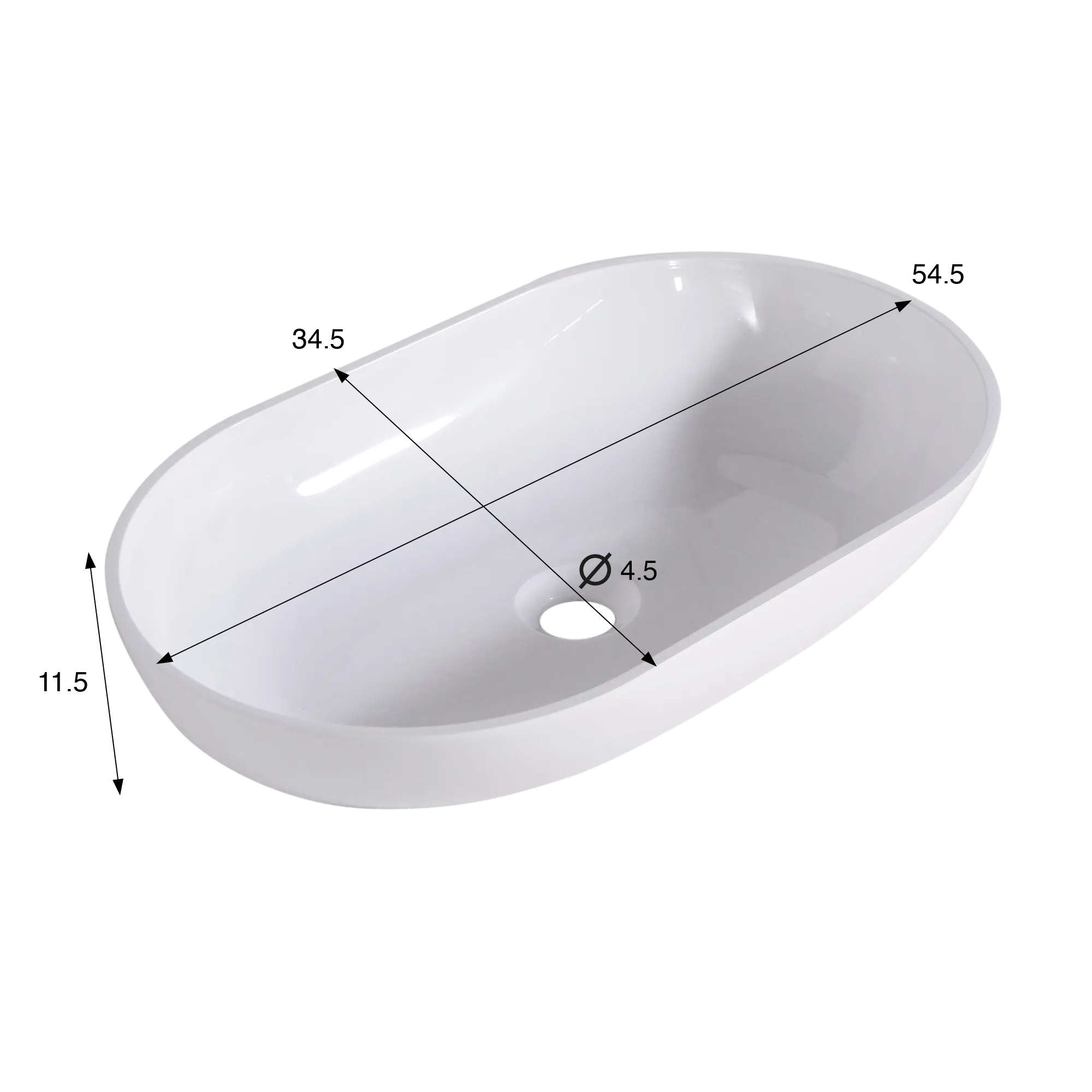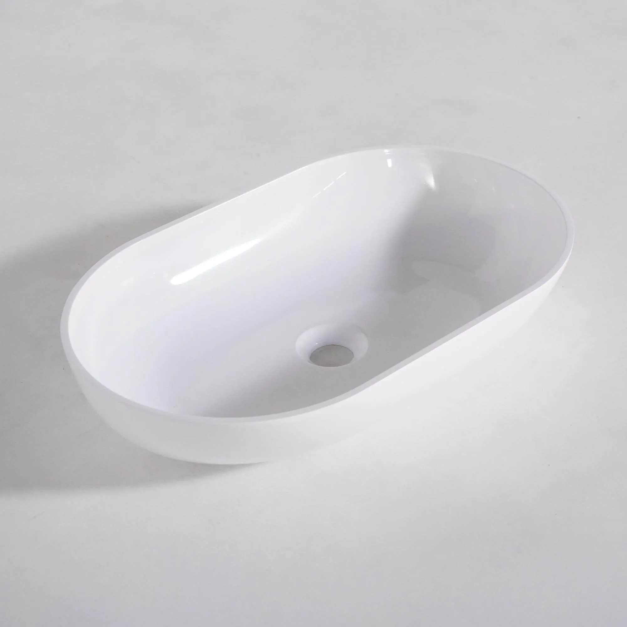 Ovale opbouw waskom van keramiek, glanzend wit – Slender