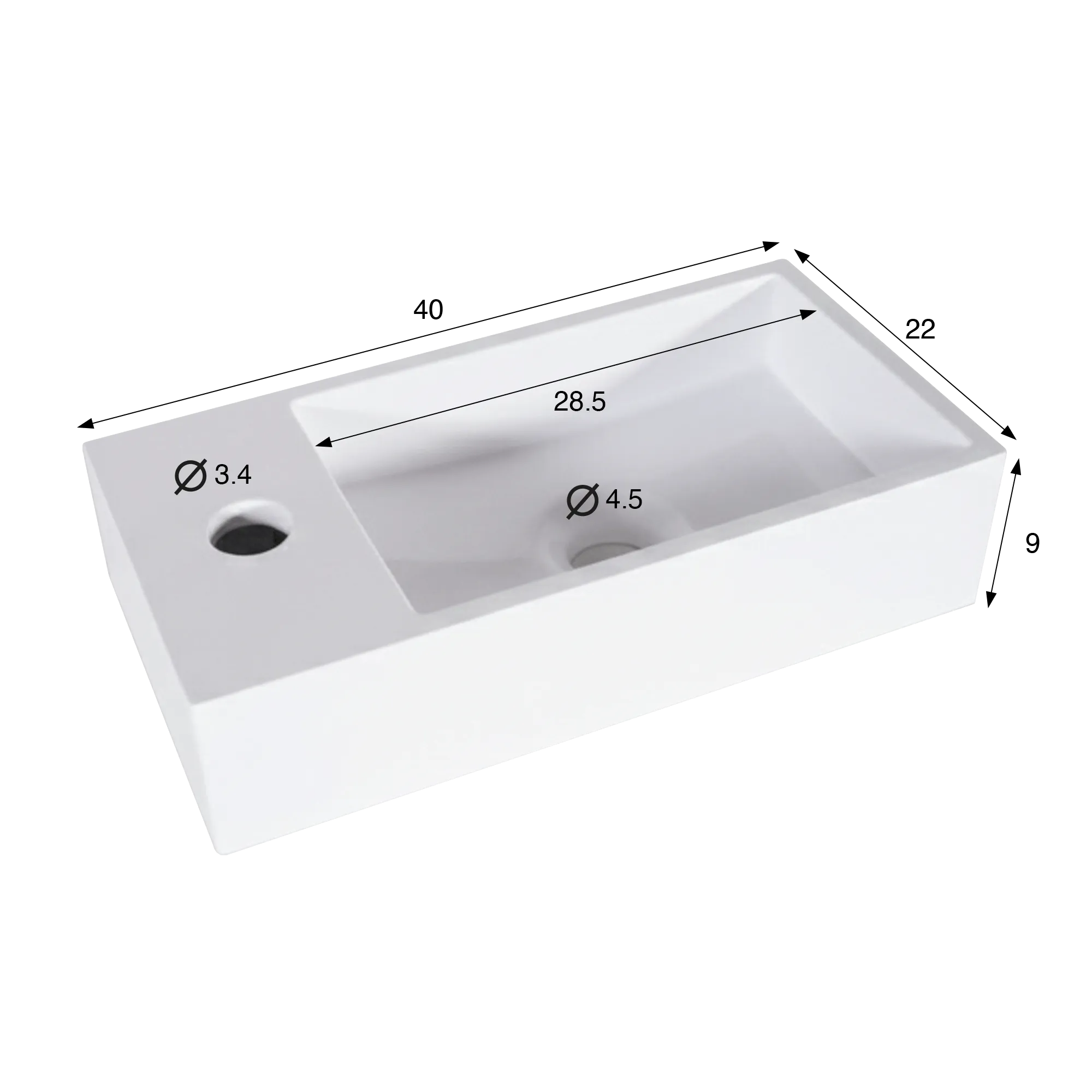 Dankzij haar compacte afmetingen is de opzetwastafel in glanzend wit keramiek, Klepsy, zowel geschikt voor kleinere badkamers als voor gebruik als handenwasser. Met een breedte van 40 cm en een diepte van 22 cm laat zij zich vlot integreren op een badmeubel of een strak werkblad, zonder in te boeten aan ergonomie. Het binnenbekken, ontworpen voor comfortabel gebruik, biedt een bruikbare lengte van ongeveer 28,5 cm en een aangename diepte, terwijl de totale hoogte van 9 cm zorgt voor een duidelijke maar evenwichtige visuele aanwezigheid. De discreet geïntegreerde kraanopening draagt bij aan de helderheid van het geheel en vereenvoudigt de installatie.