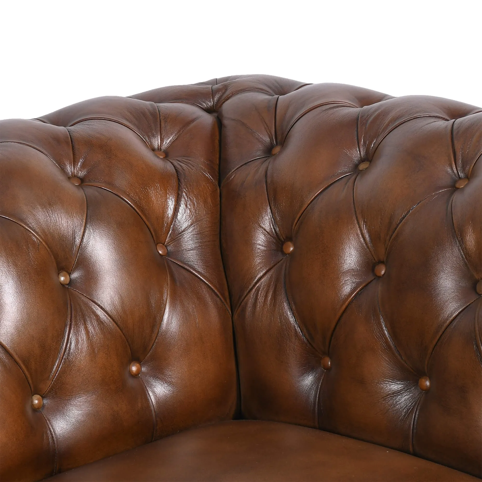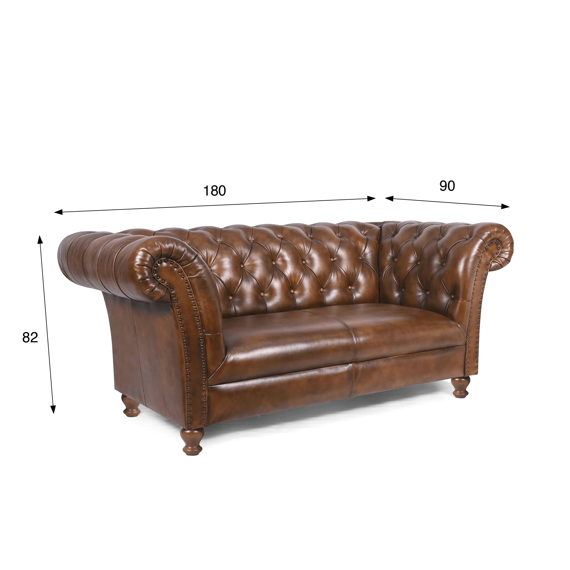 Chesterfield bank van echt bruin leer 2-zits - Henry