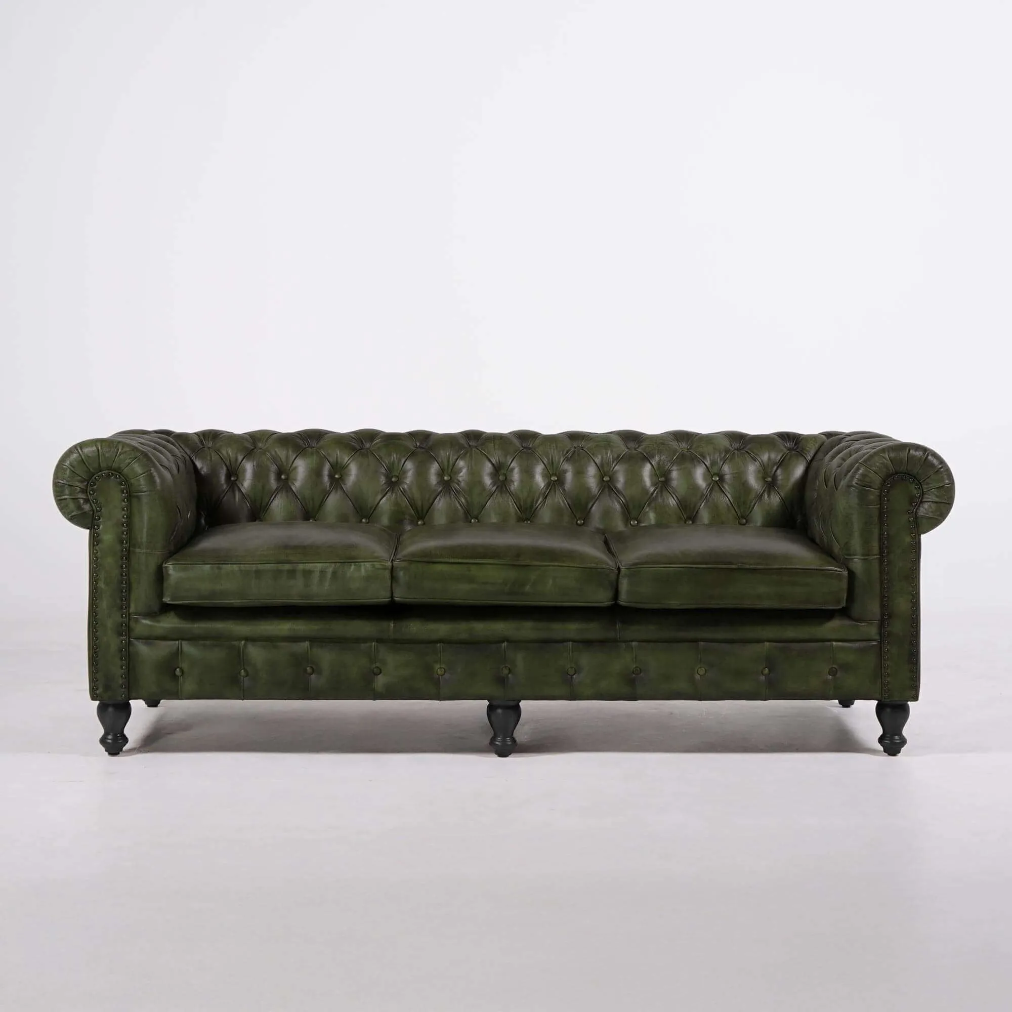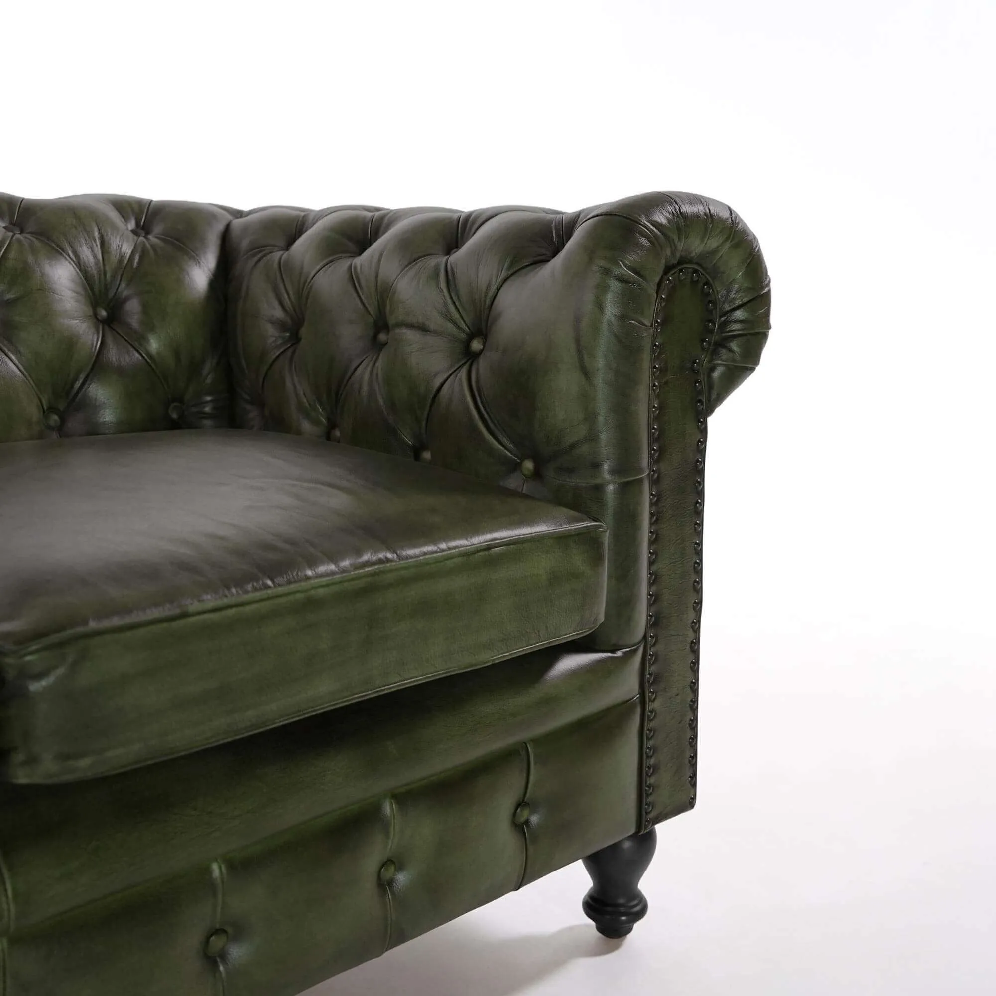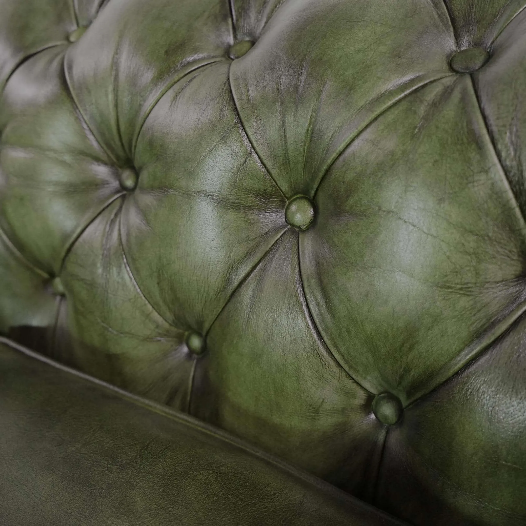 Chesterfield bank van echt groen leer 3-zits - Edward