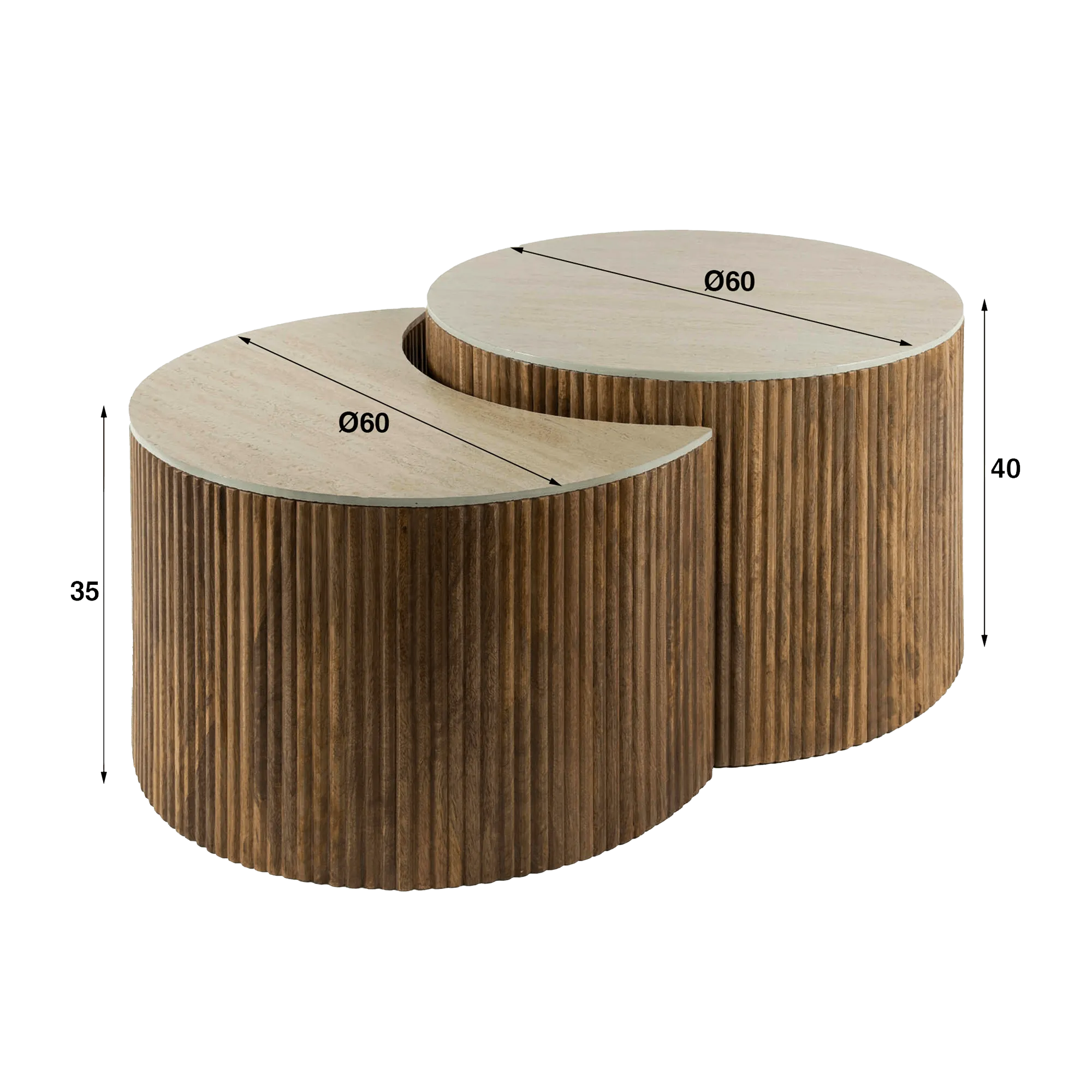 Halfronde salontafel in massief mangohout (set van 2) – Nuovo