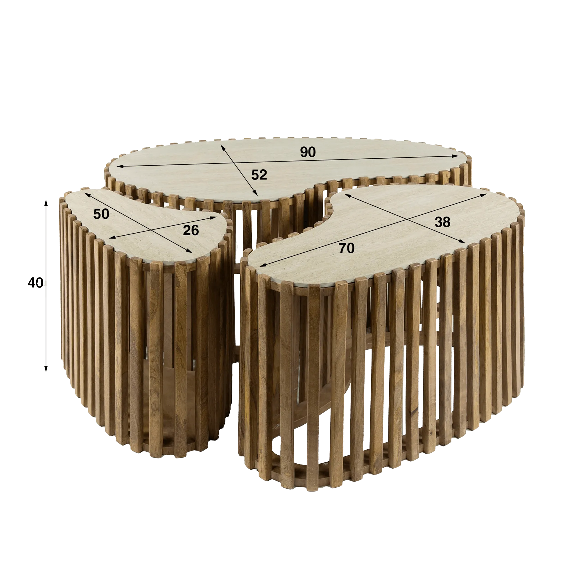 Half-ronde salontafel in massief mangohout (set van 3) – Nuovo