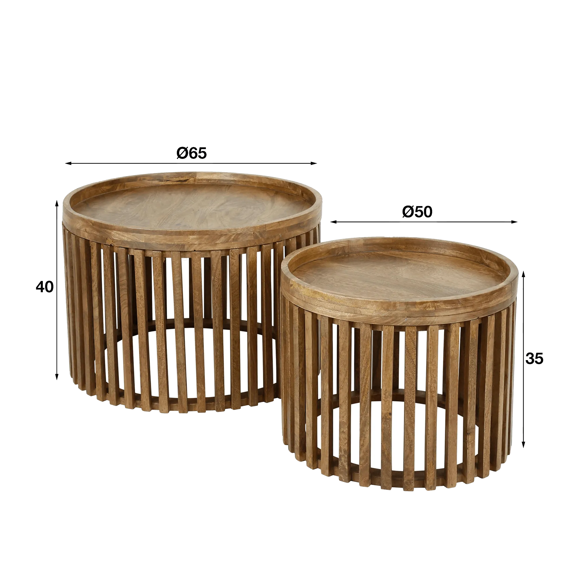 Ronde salontafels in naturel mangohout (set van 2) – Orbit