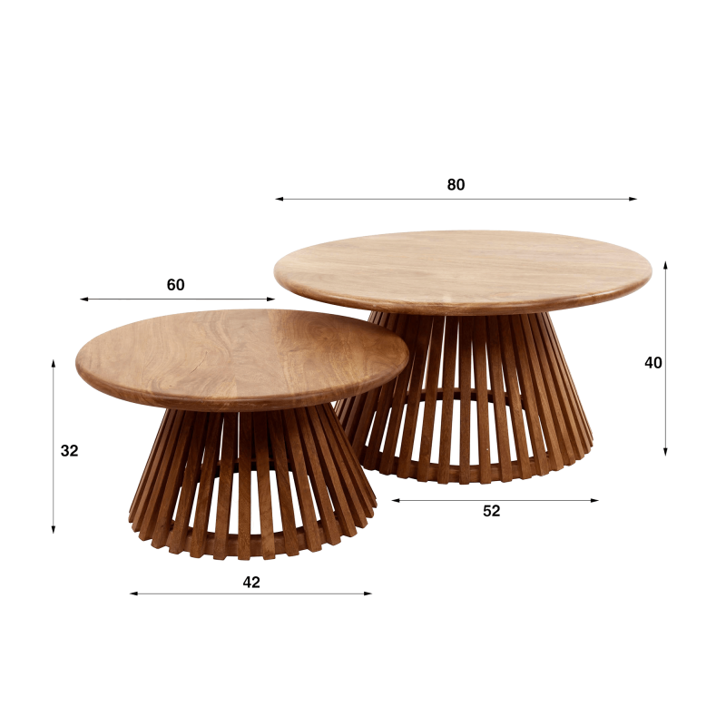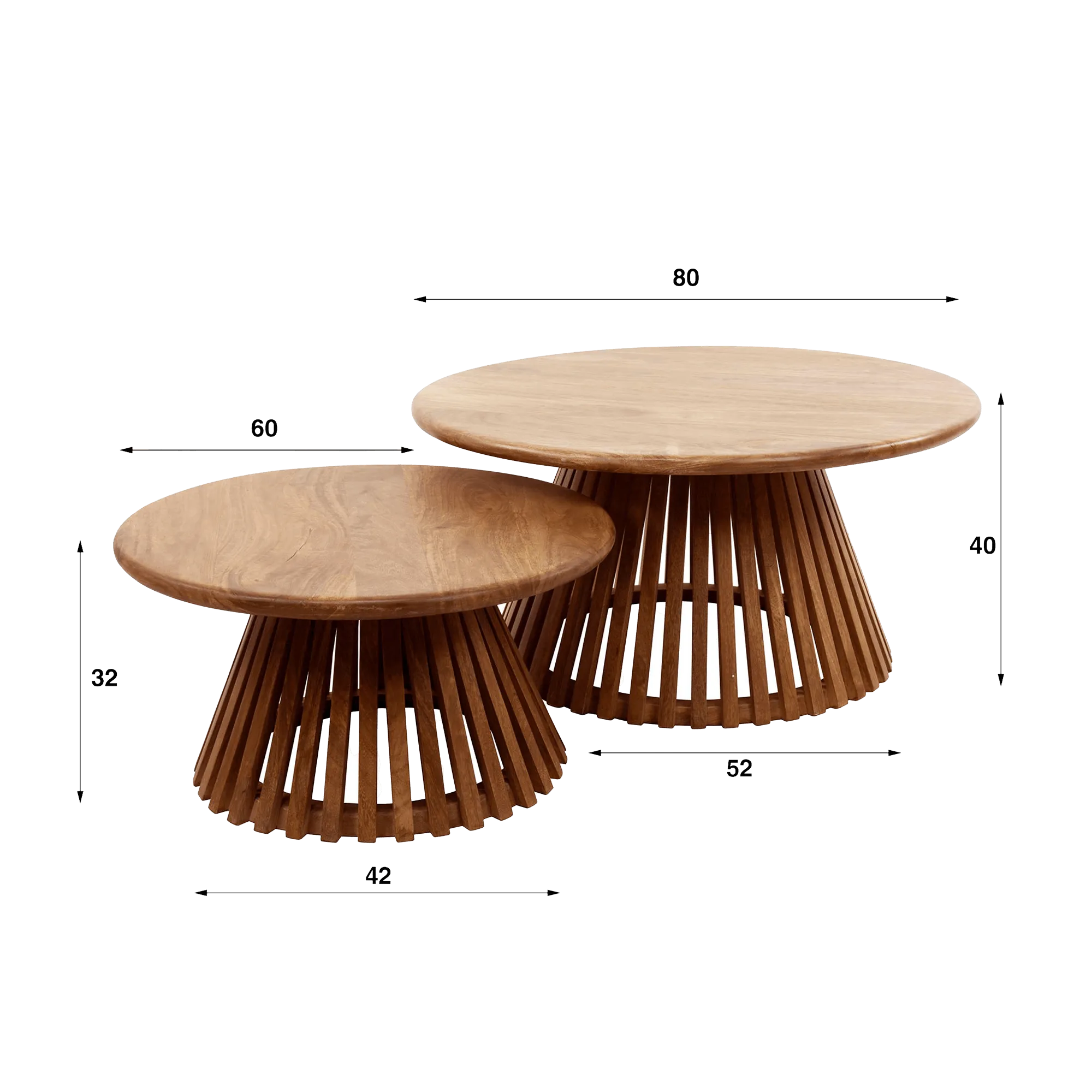 Conische salontafel in natuurlijk mangohout (set van 2) – Orbit