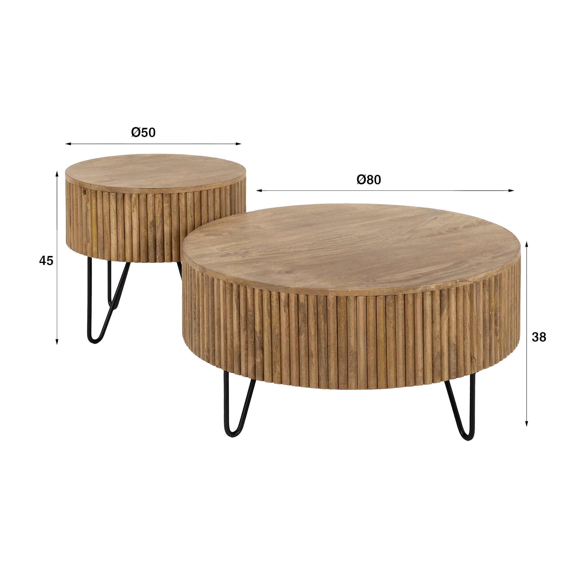 Ronde salontafels in massief mangohout (set van 2) – Cresco