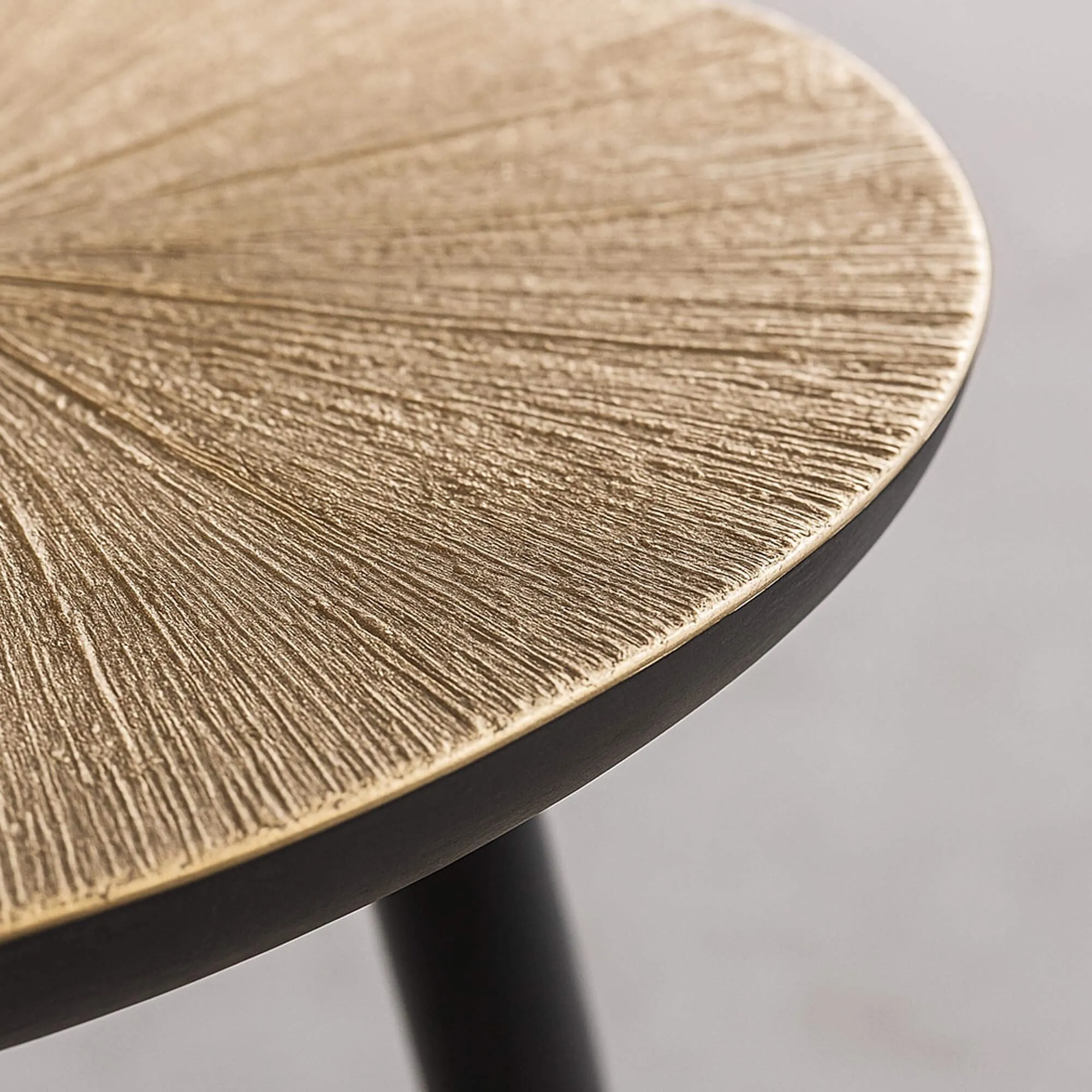 Onze designers verkennen graag hoe een materiaal de sfeer van een interieur kan transformeren. Met de goudkleurige metalen salontafel Nesso in twee modules wilden we het metaal een nieuwe expressie geven, door het te behandelen als een warm en levendig materiaal, bijna getextureerd als fijn generveerd bladwerk. Het goudkleurige metalen tafelblad, volledig met de hand vervaardigd, onthult een grafisch spel van fijne stralende lijnen die zachtjes het licht vangen en een subtiele aanwezigheid in het salon brengen.