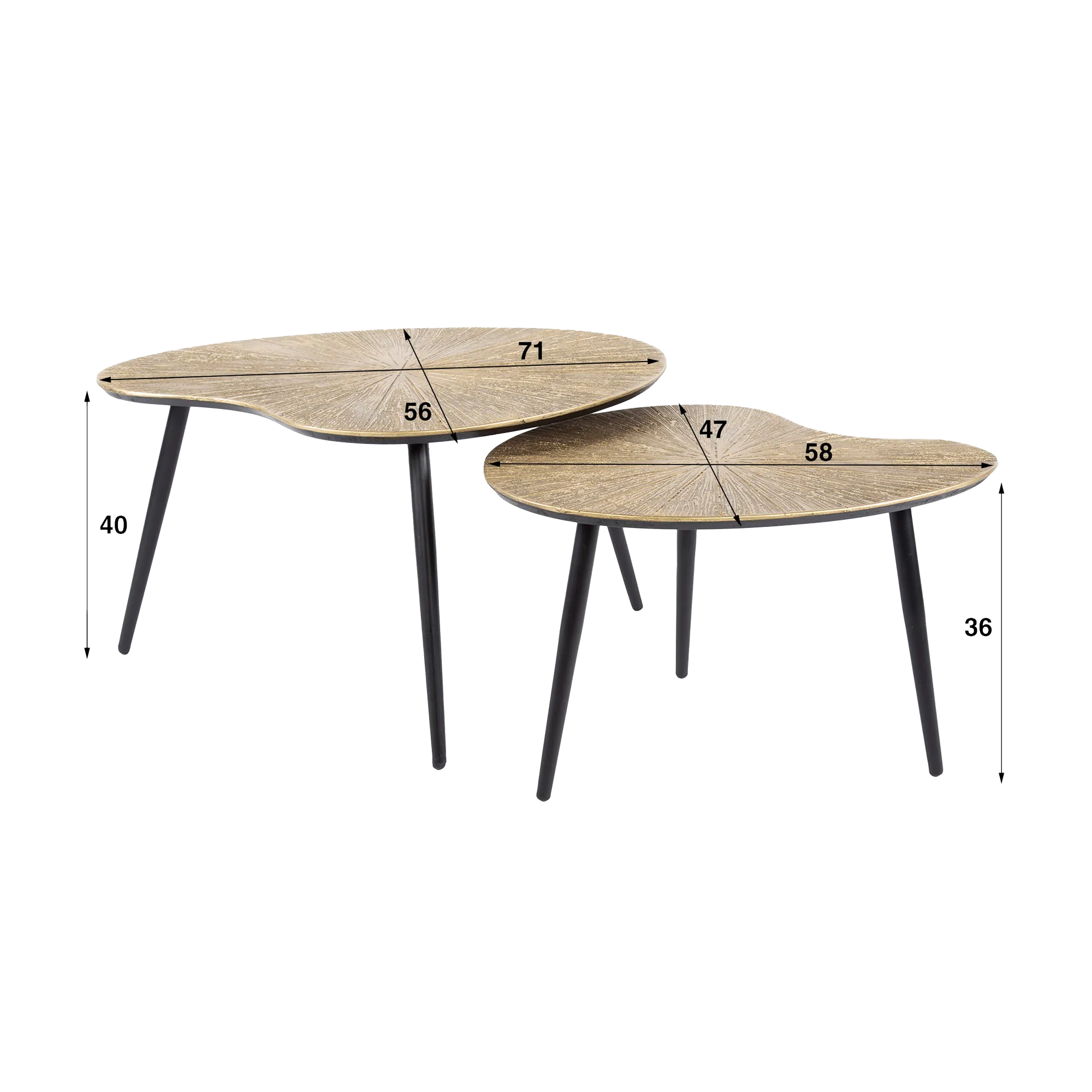 Set van 2 salontafels in goudkleurig metaal – Nesso 71/58 x 56/47 x 40/36 cm