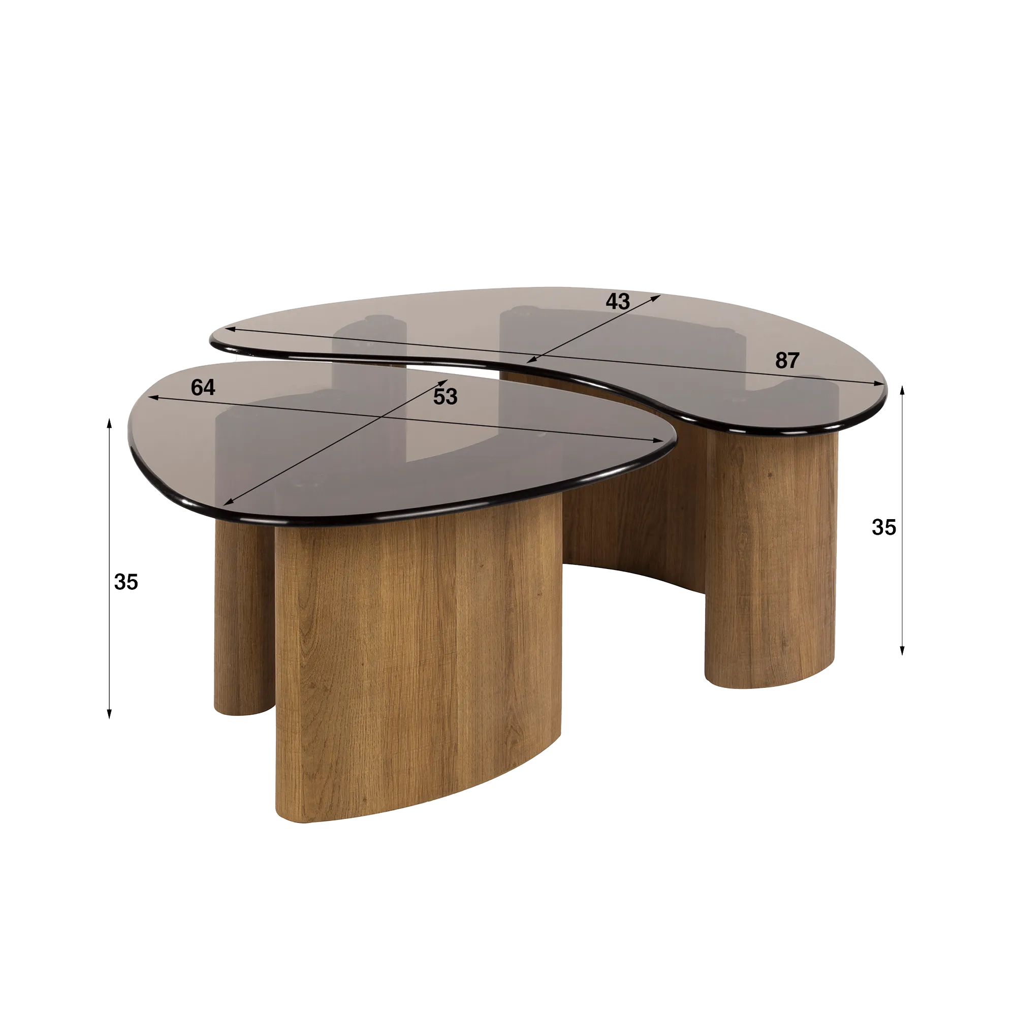 Salontafel in organische vorm met glazen blad (set van 2) – Tinto